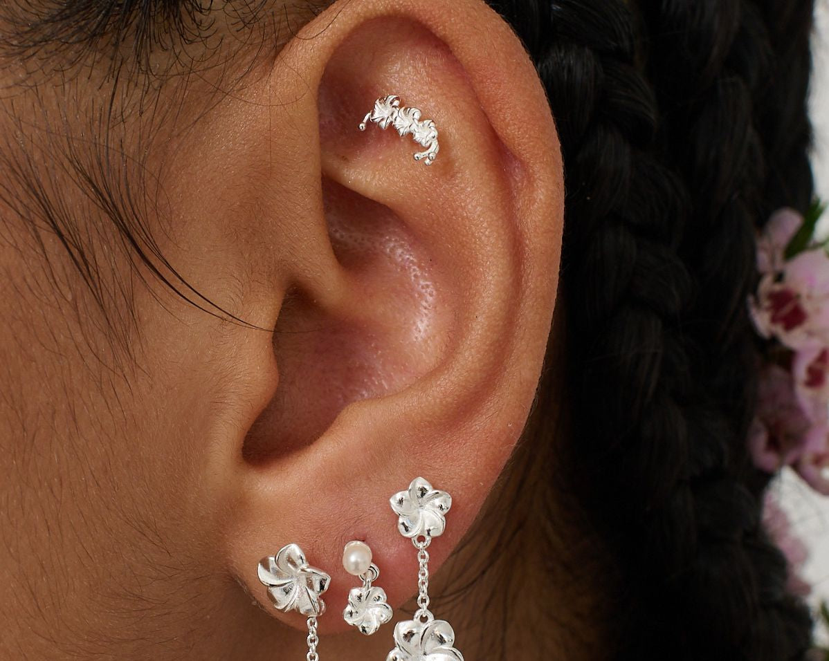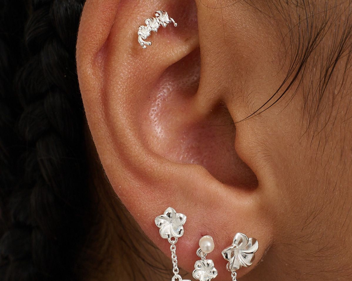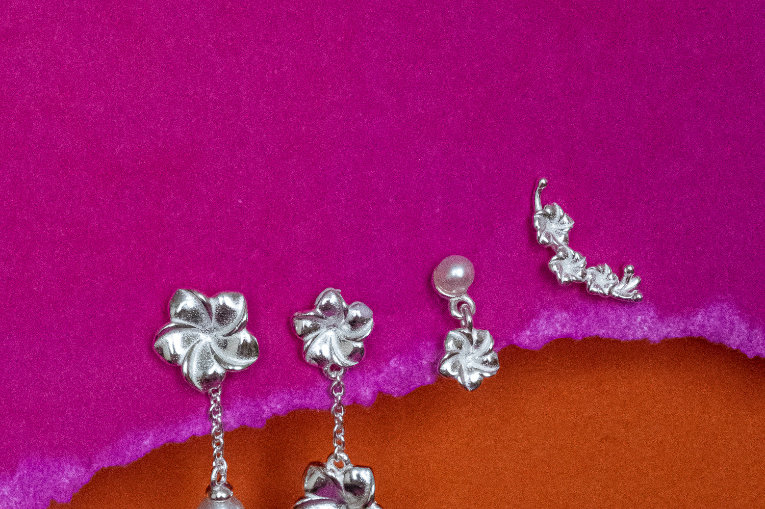 Hibiscus Flowers Earrings Set - Sterling Silver