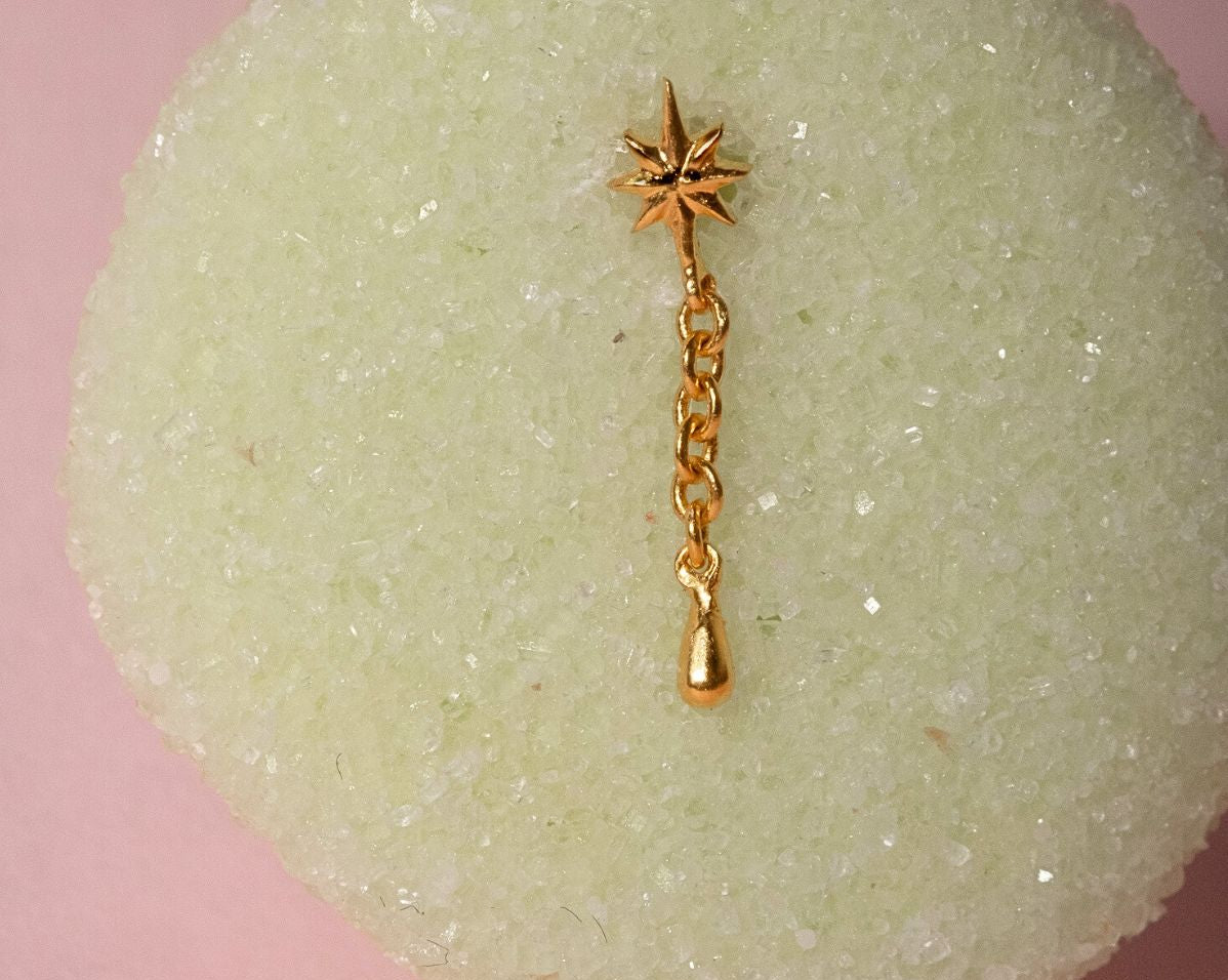Hoshi means ‘star’ in Japanese, and this chain stud shines like one. Comes with a ball back for comfort and works great for earlobe or helix piercings.