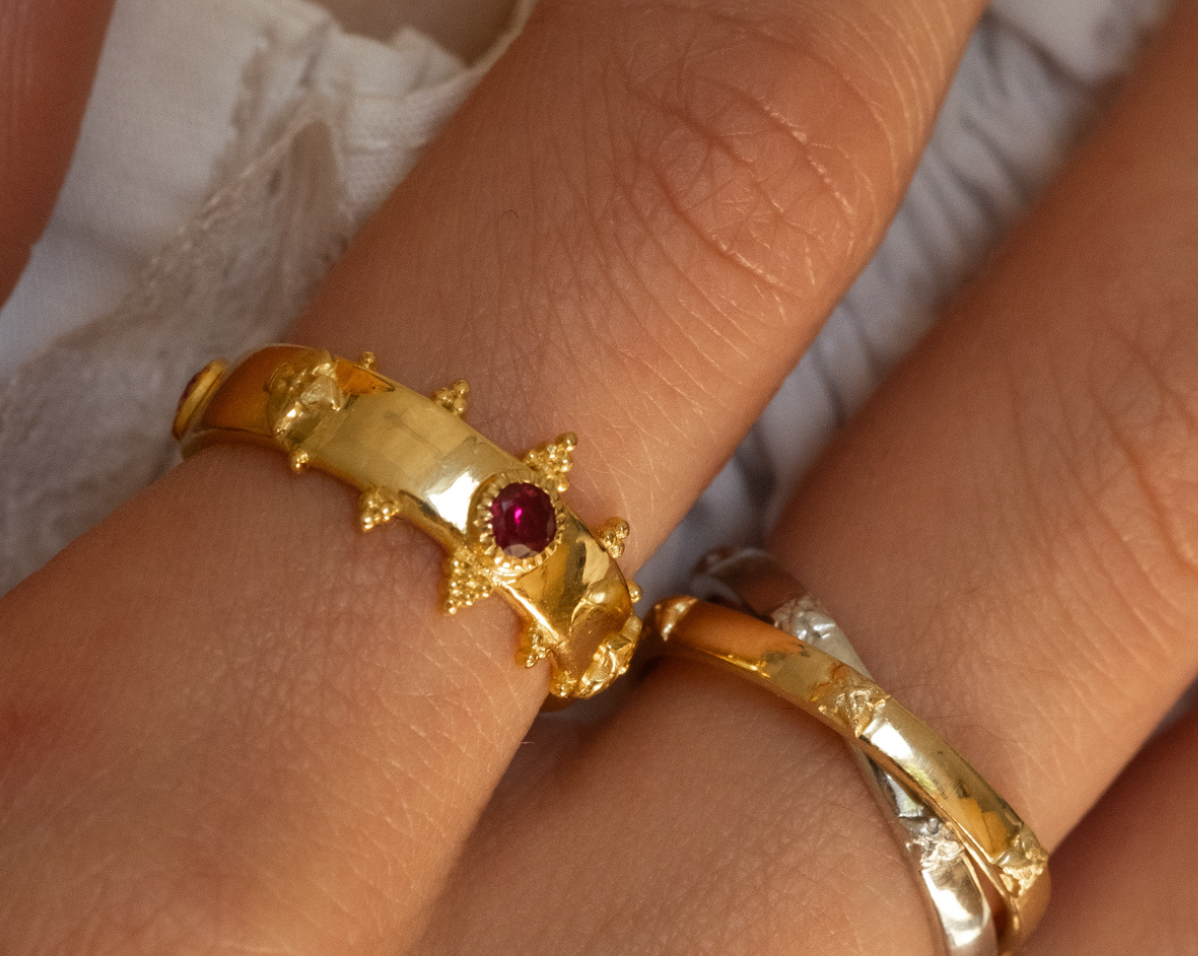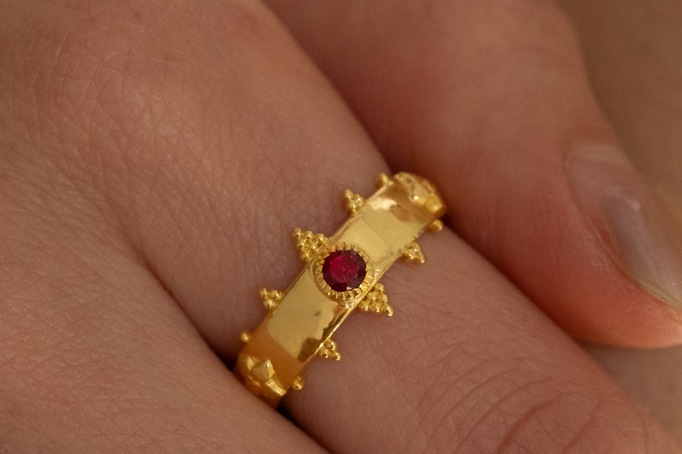 Regal, bold, and mystical, just like Howl himself. In a world full of magic, this piece captures his free-like, adventurous persona with a striking red gemstone, symbolizing the heart he both feared and longed for.