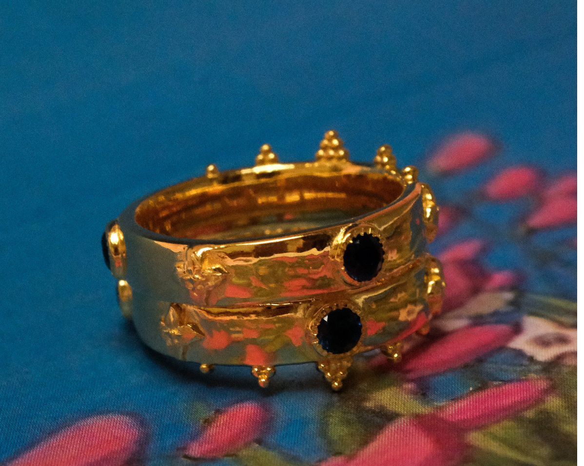 The sold out Howl Crown Ring returns, this time in original blue sapphire, as a true nod to the film. A crowd favourite, this piece is sure to sell out. This is your last chance to own a piece of the majestic and magical token that crowns your fingers.