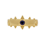 • Features a signature crown silhouette with hand-set sapphires and bead-granule detailing