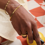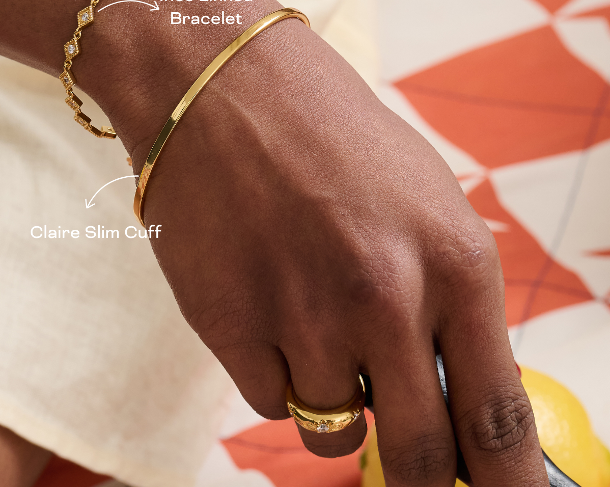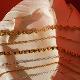 The Ines Bracelet takes the signature motif of our bestselling ring and reimagines it as a sleek chain of interlinked forms. Designed to move with you, it’s equal parts polished and playful - the kind of piece you’ll reach for every day but also notice in every photo. Think of it as your quiet statement, subtle enough for stacking but striking enough to stand on its own.