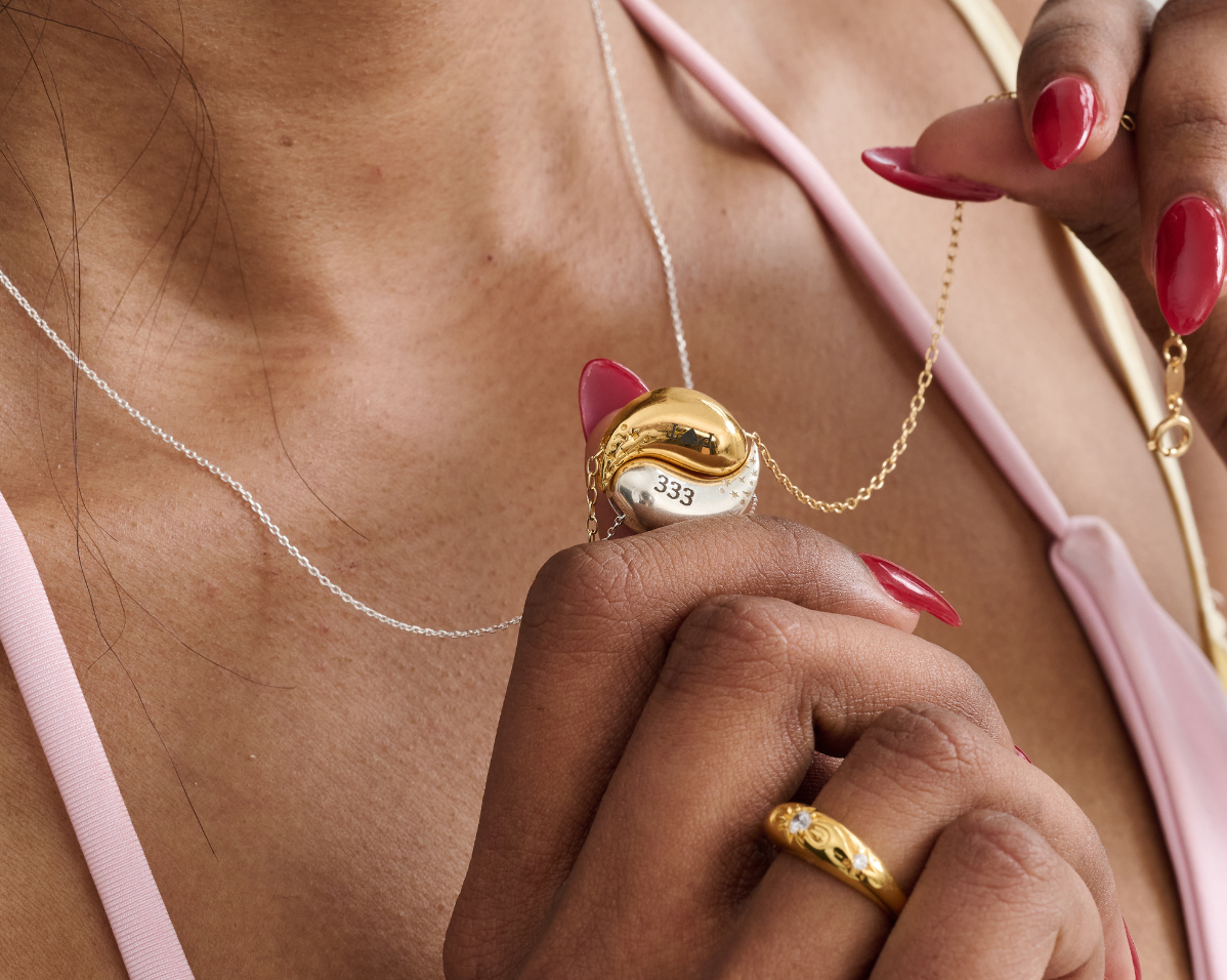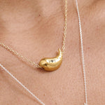 Inspired by Creative Director Chi's first-time motherhood journey, the Inyo Necklace is a symbol of interconnectedness. Designed to be like a water droplet, separate when on their own, but whole when they're together.