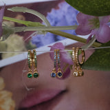Looking for something classic with a splash of color? The Josephine Hoops in Emerald are just what you need. These hoops are great for adding a little bit of personality to your look.