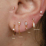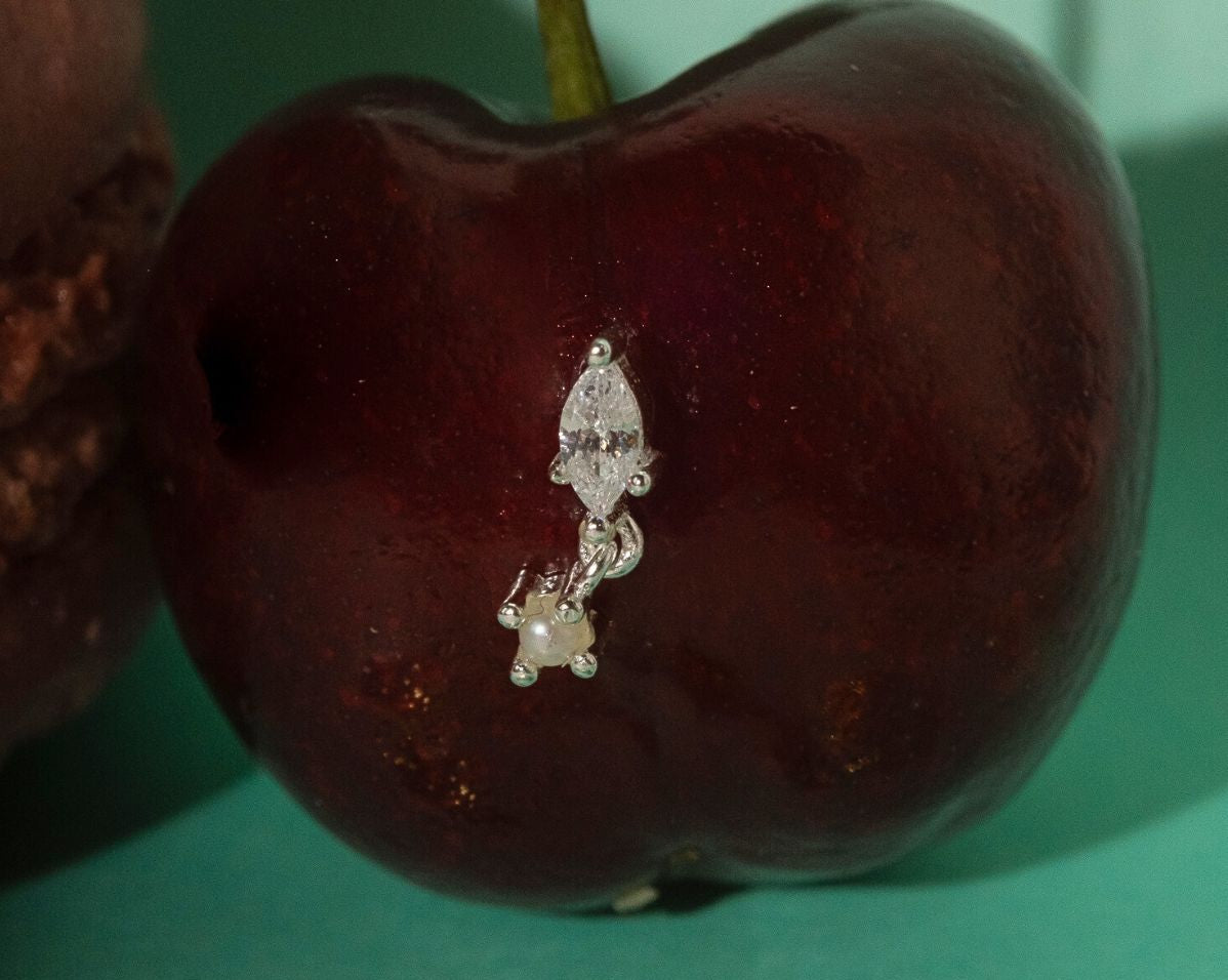 This kite-shaped dangle stud is simple and easy to wear. With a flat back for comfort, it’s perfect for different piercings, including the earlobe, helix, conch, forward helix, and tragus. A nice choice for everyday style and fit.