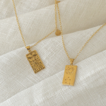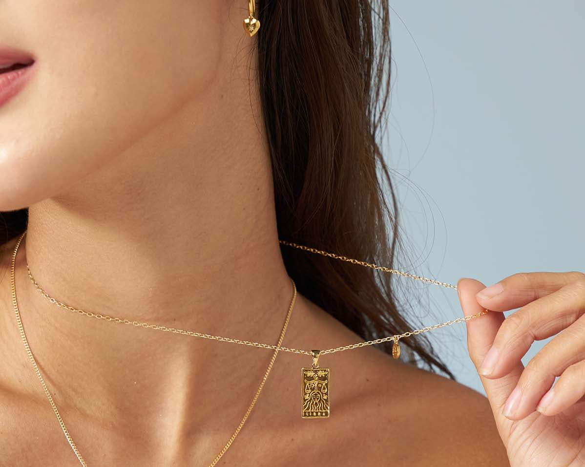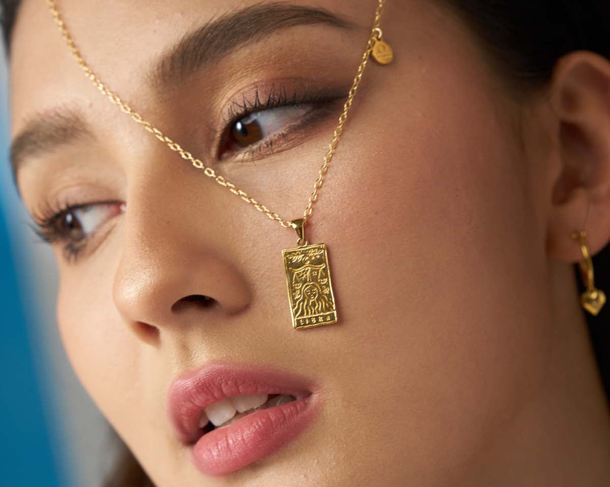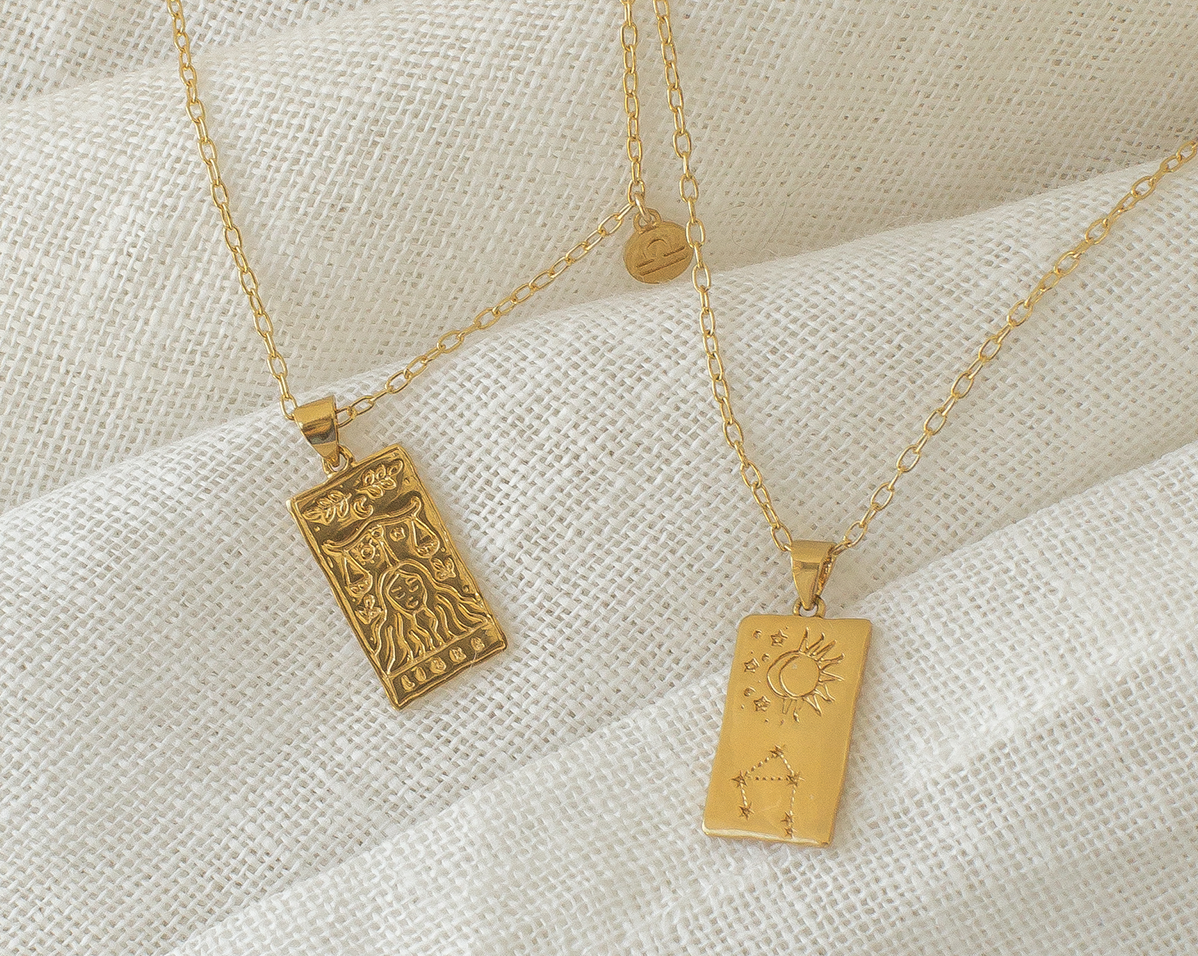 The collection features 12 pendant necklaces with a double-sided tarot-inspired star sign pendant, and a customizable mini star sign charm. Inspired by tarot cards, and the magical world of astrology, the 12 necklaces are customizable with two signs – sun and moon signs – or those with signs on the cusp.