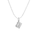 The pendant features an intricate envelope design that opens to reveal a miniature plaque—perfect for engraving a name, date, or secret message (plaque size: 10mm x 7mm, 0.8mm thick). Every angle is considered, from the polished back to the secure hinged clasp and dainty bail for your chain.