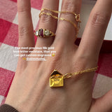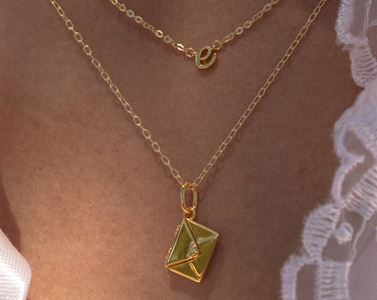 Inspired by the timeless romance of handwritten letters, the Love Letter Engraved Pendant captures the magic of a message meant just for you. Designed in the shape of a tiny envelope with a delicately embossed heart on the front, this piece symbolizes affection, connection, and the sweet nostalgia of love in its purest form.