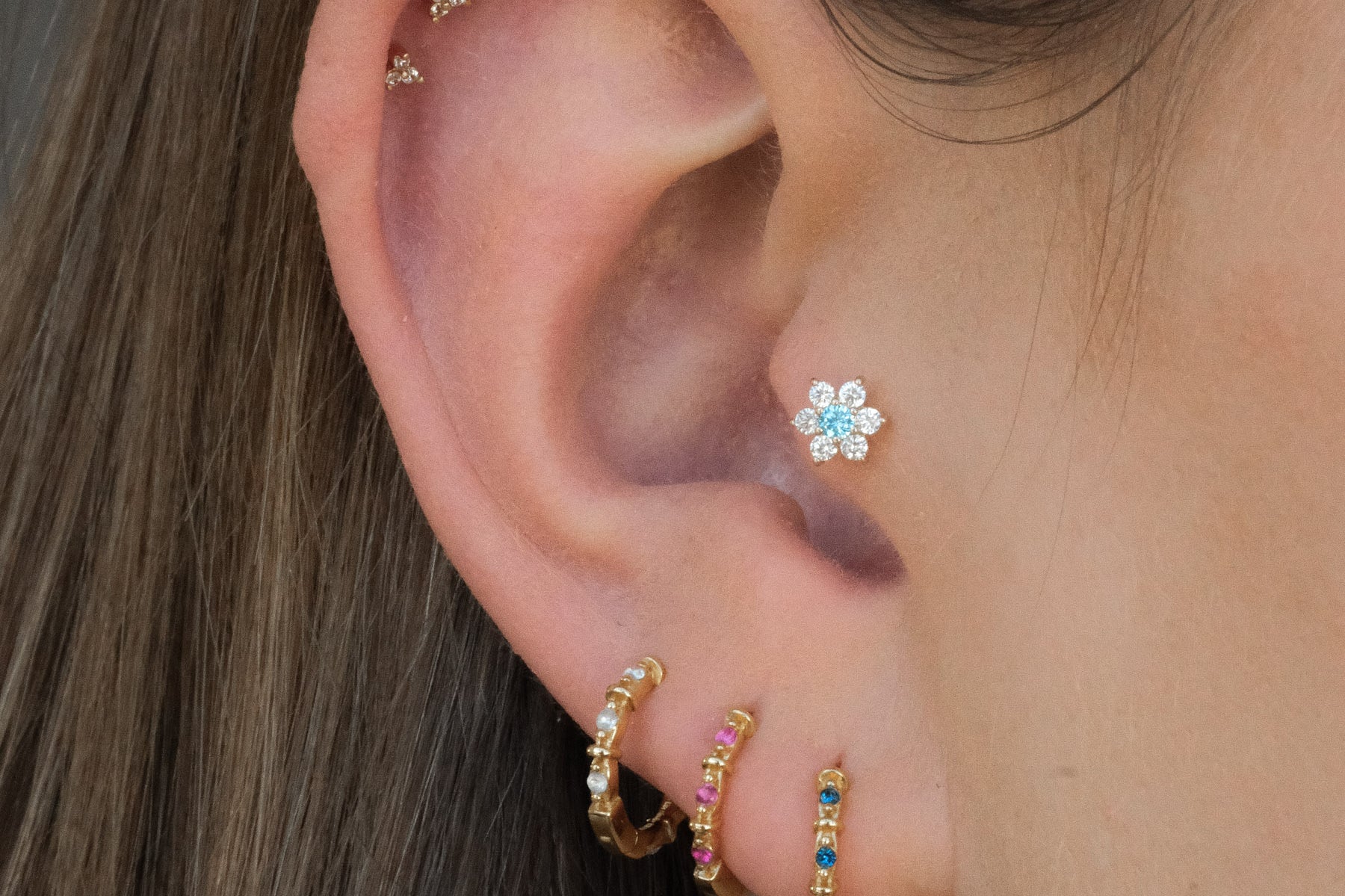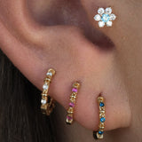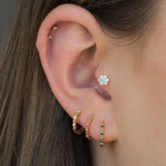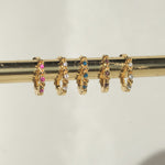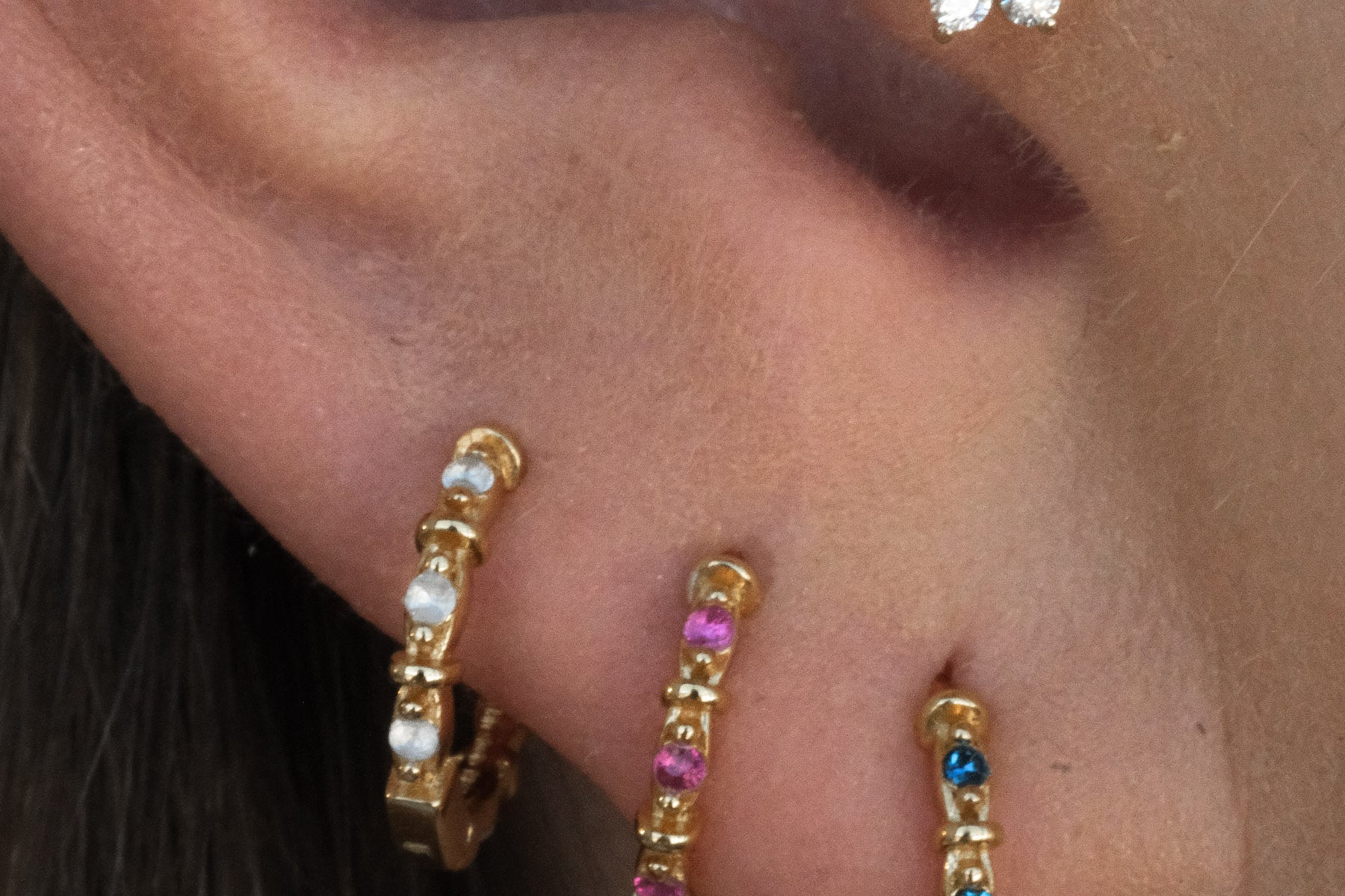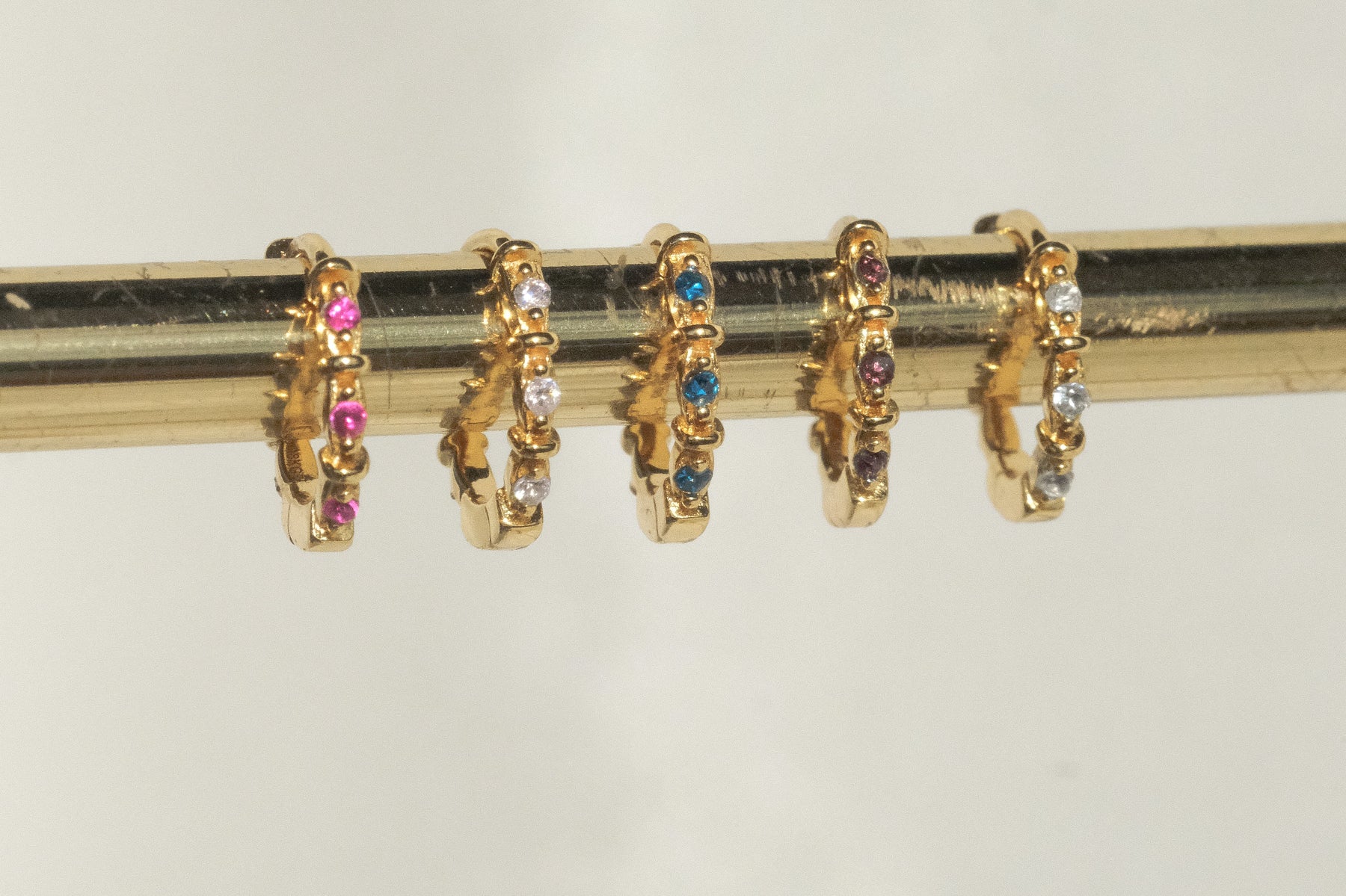 Inspired by a beautiful vintage wedding band that originated from Scotland in the 1960's, Madame Blanche is a modern take on a vintage huggie hoop. Colours of Summer takes our classic modern vintage best-seller and transforms them into colourful adornments for summery days ahead.