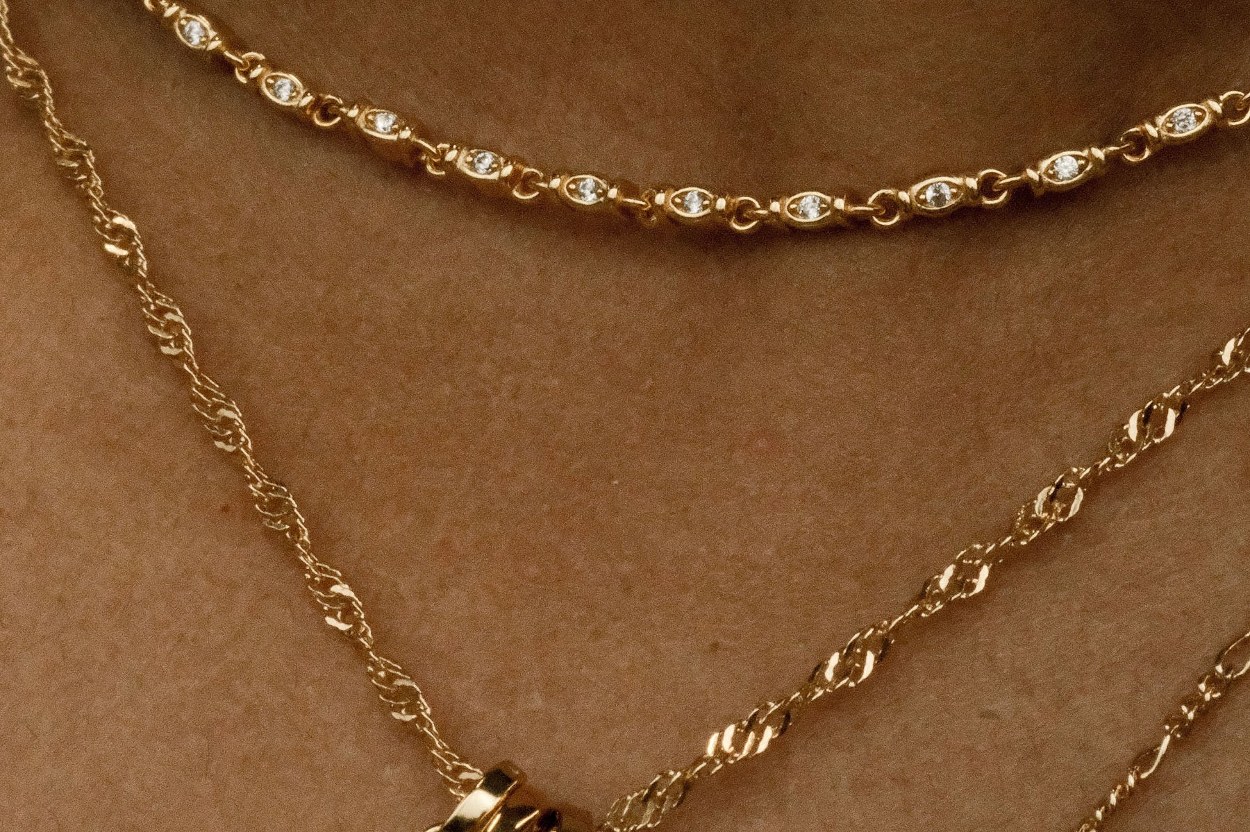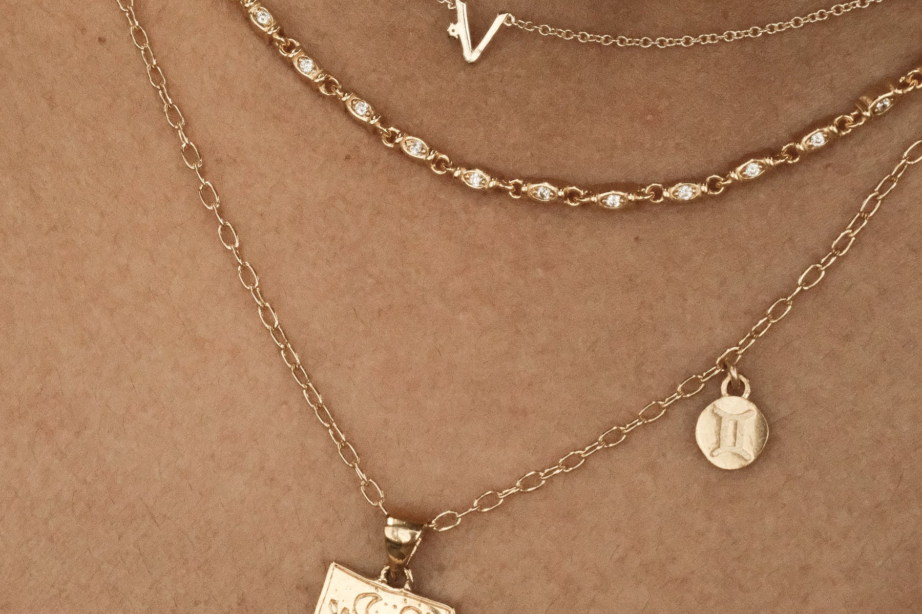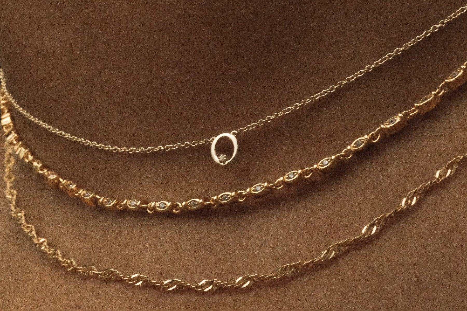 With any type of jewelry, even solid gold and solid silver, regular cleaning and upkeep is needed to keep your jewelry in its best condition. Simply use warm water and soap or a polishing cloth to clean. You can use our jewelry in water, however do wipe it down with warm water after you’re done, especially after being submerged in salt water. Sweat can also make your jewelry duller quicker, especially necklaces, so remove these when you are working out. Avoid exposing your jewelry to skin care products, soaps, detergents and perfumes. Store your jewelry in your S-kin Studio pouch or box to avoid moisture and metal on metal rubbing.