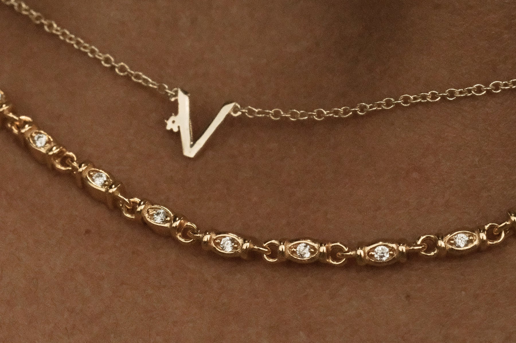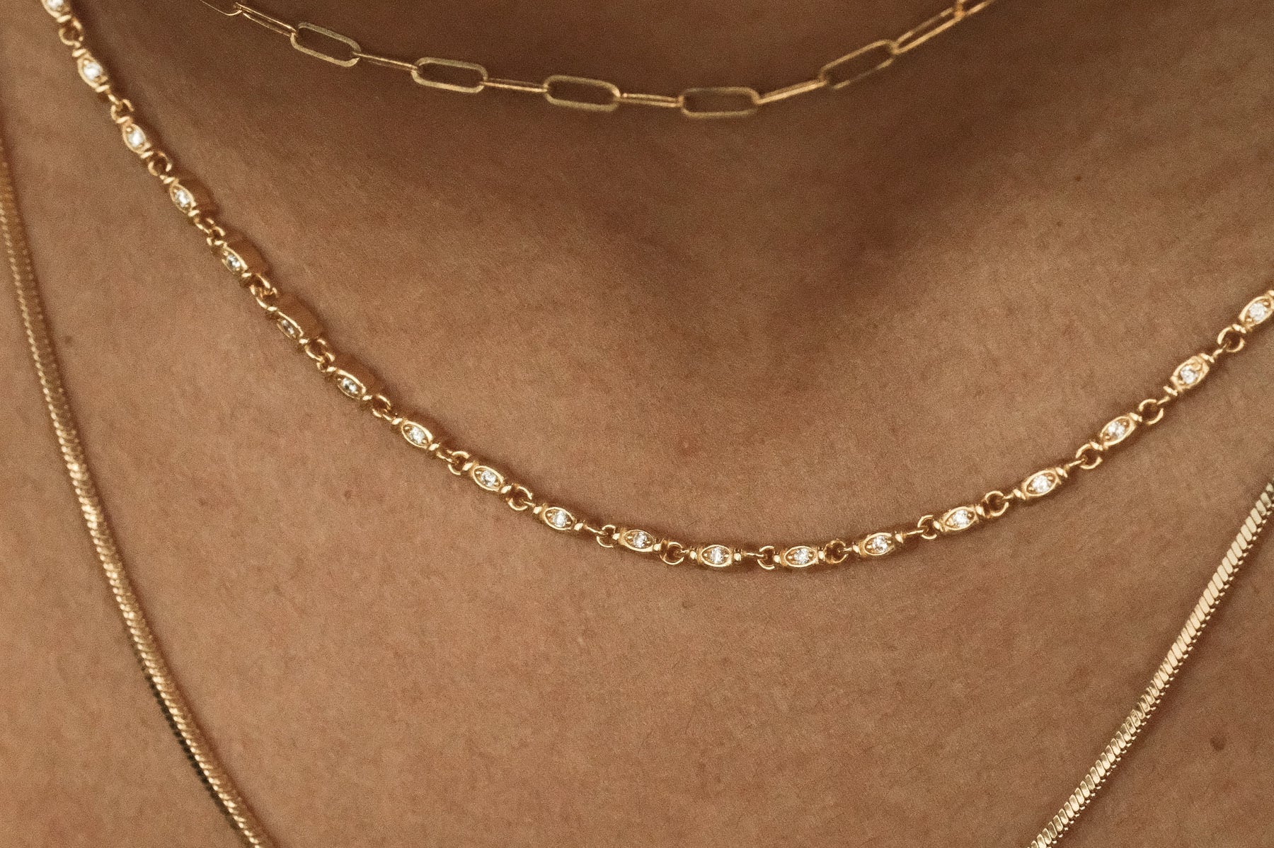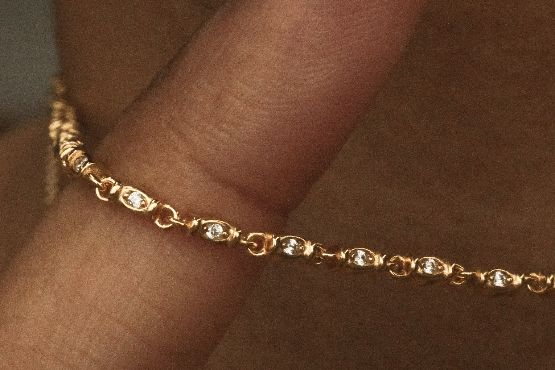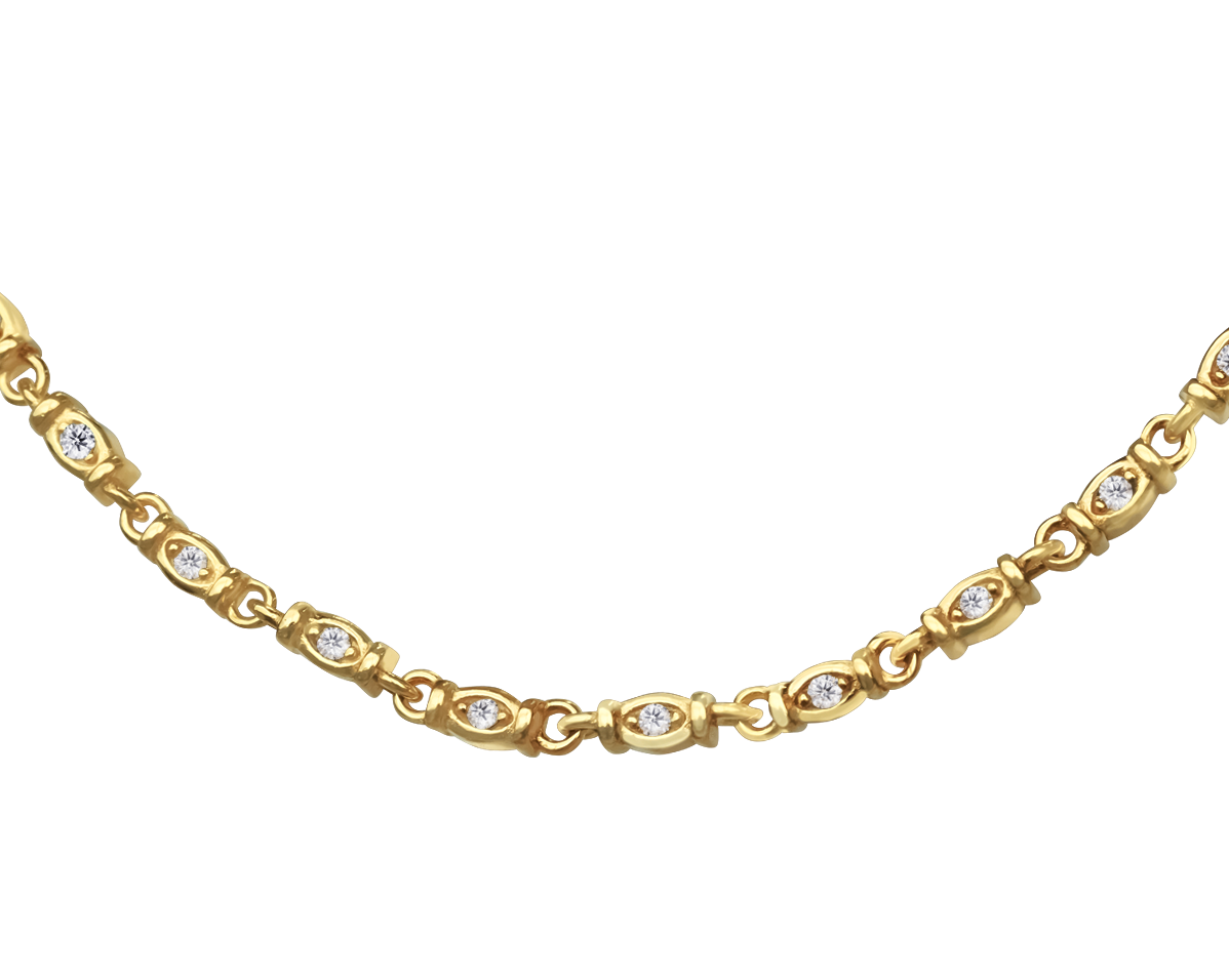 - Unique Madame Blanche leaflets with cubic zirconia gemstone motif as each link