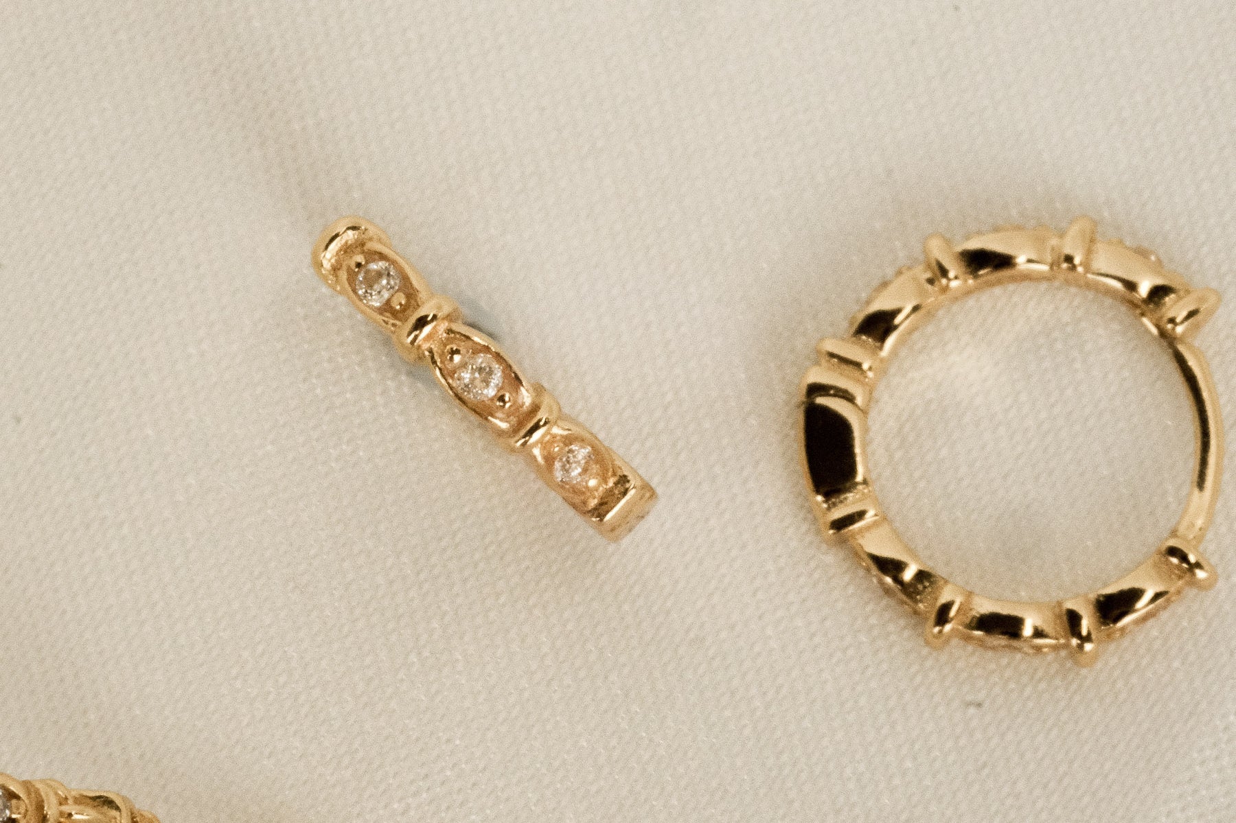 Inspired by our best-selling Madame Blanche Huggie Hoops, a design that has been well-loved since its inception in 2019 at S-kin Studio Jewelry. Designed after a vintage Scottish wedding band, the name 'Madame Blanche' stands for 'The White Lady' from the ever so loved Outlander series.