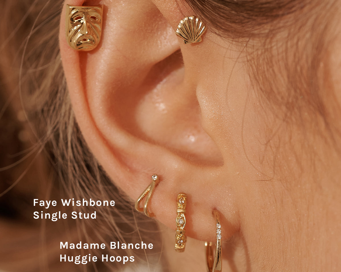 Inspired by the desire to have beautiful and high quality earrings for all our ear piercings, the Piercing Collection is suitable for fresh and healed piercings. With lobe friendly hoops and helix friendly ball back studs, the Piercing Collection can cater for fresh and healing piercings.