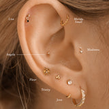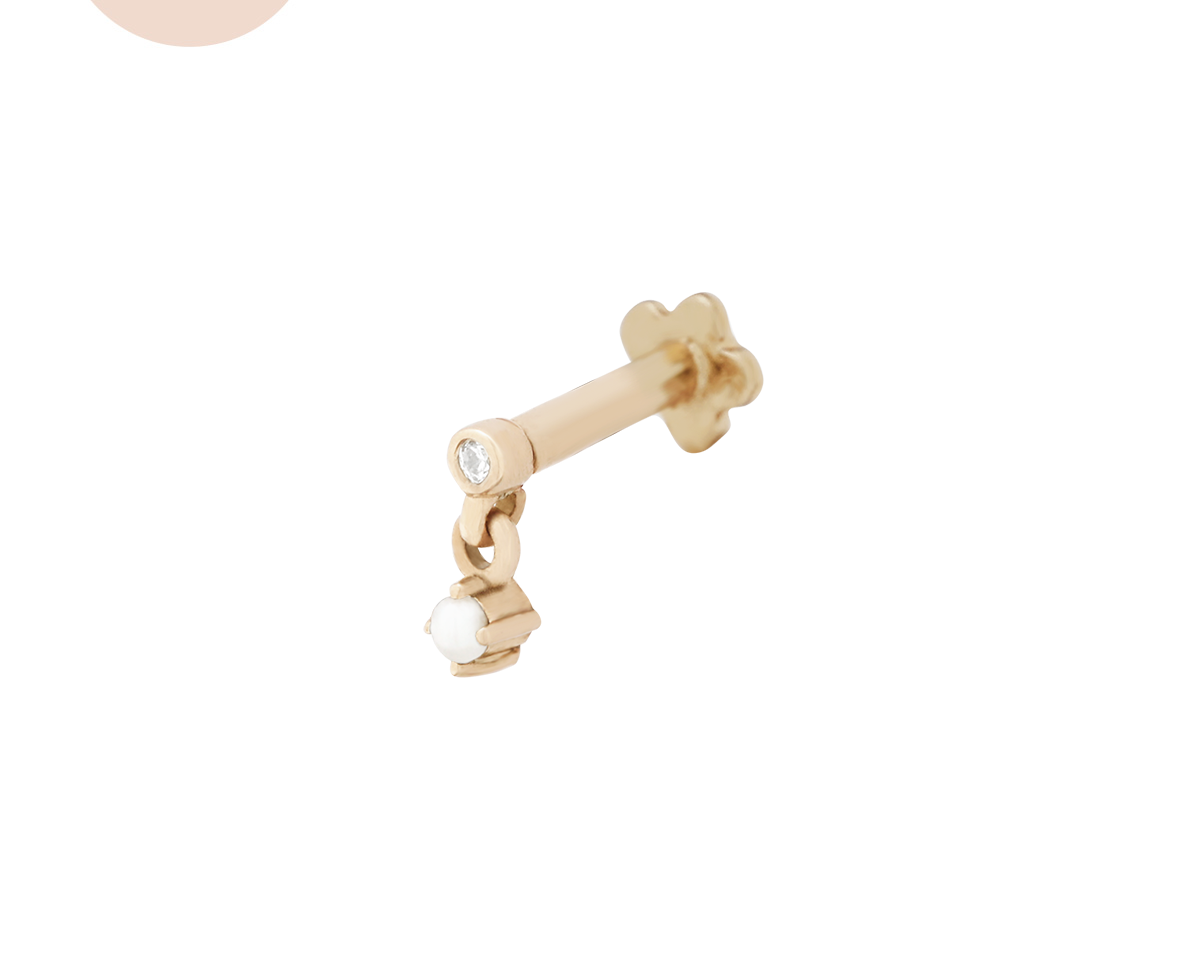 This timeless internally threaded flatback stud is suitable for your lobe, upper lobe, helix, tragus, conch, front helix, conch, flat piercing.