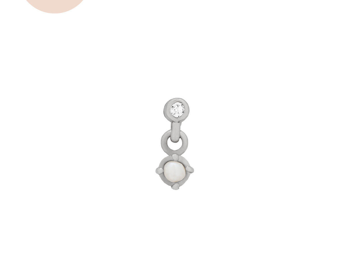 - Featuring one tiny cubic zirconia & one tiny pearl