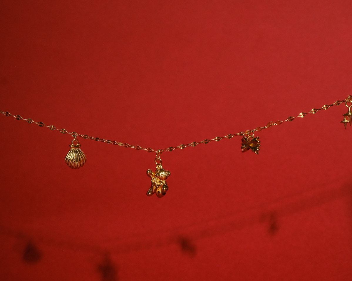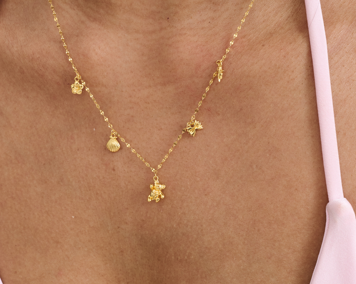 Each charm dances lightly against a golden chain, adding movement and story to your everyday layering. Wear Marina as a reminder of where you’ve been, or as a talisman for the stories still to come.