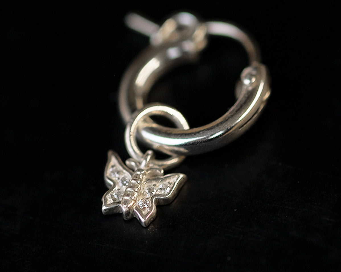 Named after the Heath fritillary butterfly also known as Athalia of the Nymphalidae family, these stunning mini butterfly stud features five cubic zirconia stones. Add this petite charm to any of your hoop earrings for a customised unique look.