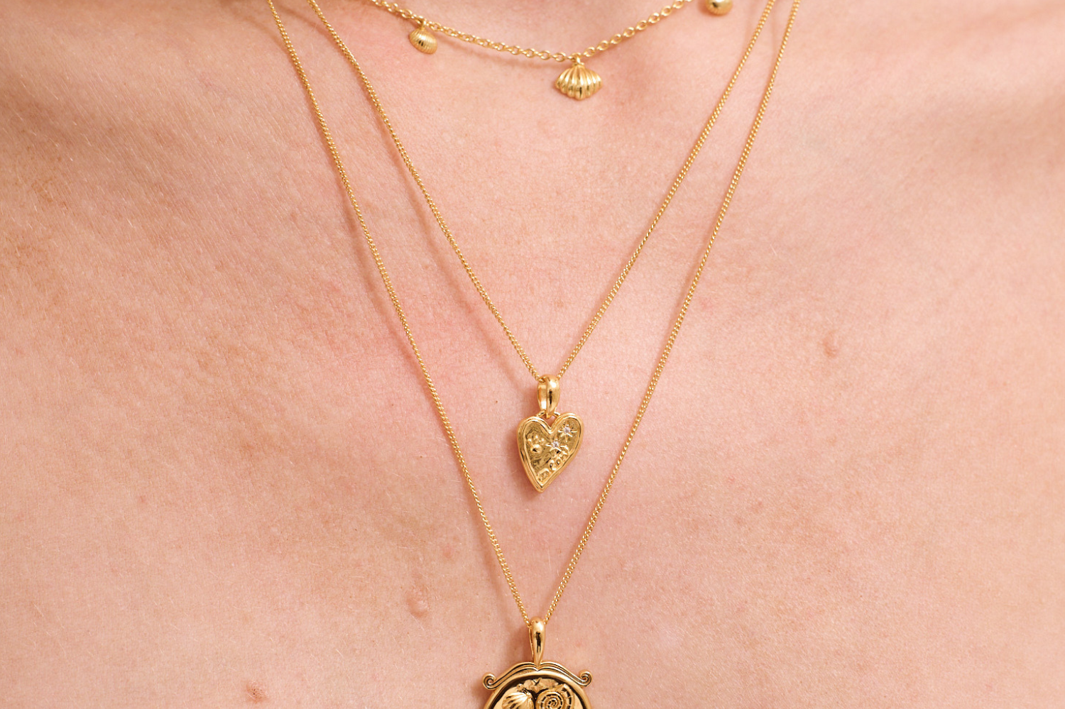 Gold-filled is the closest alternative to solid gold. Gold filled jewelry has a thick layer of solid gold bonded onto the base layer, usually brass or sterling silver. Compared to gold plated which uses a process of electroplating that quickly dips your jewelry in gold, resulting in a miniscule layer of gold, gold-filled is much more durable and long lasting.