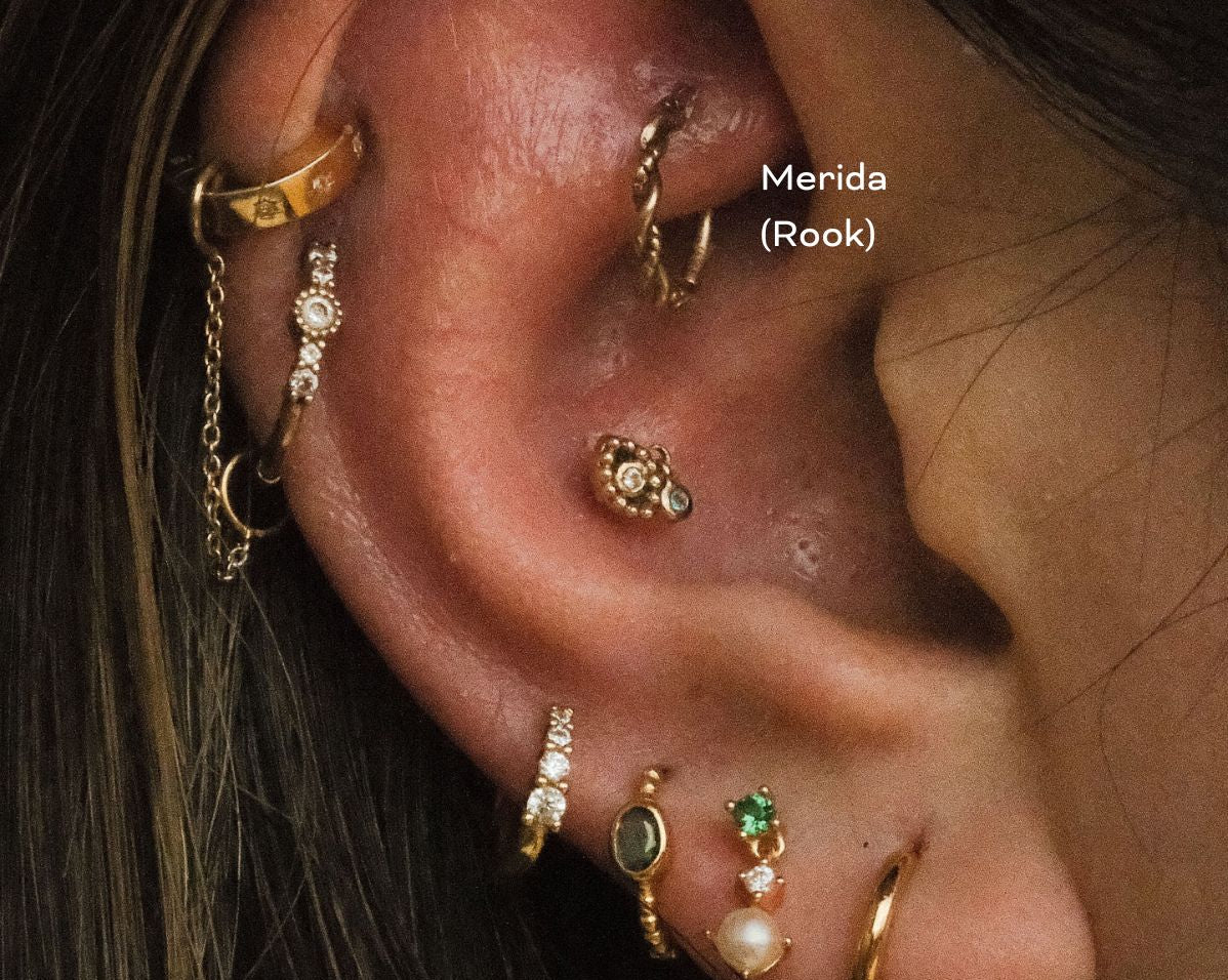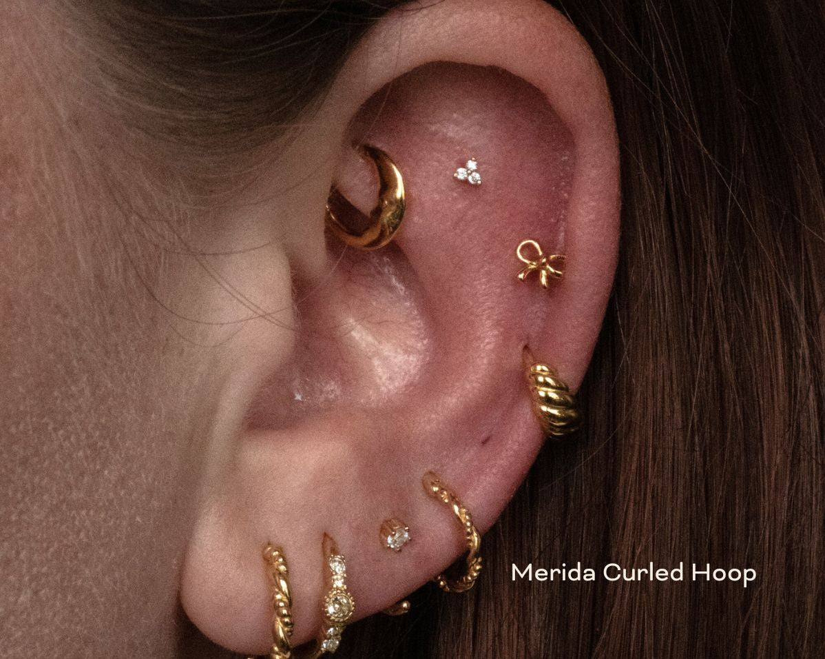 Merida is is a petite hoop that is suitable for healed lobe, upper lobe, helix, rook, daith and septum piercings.