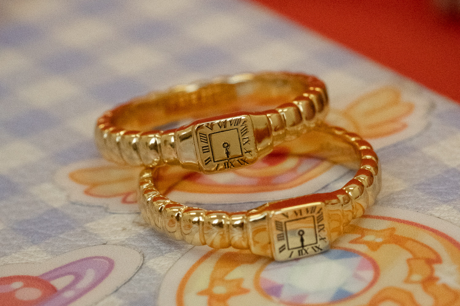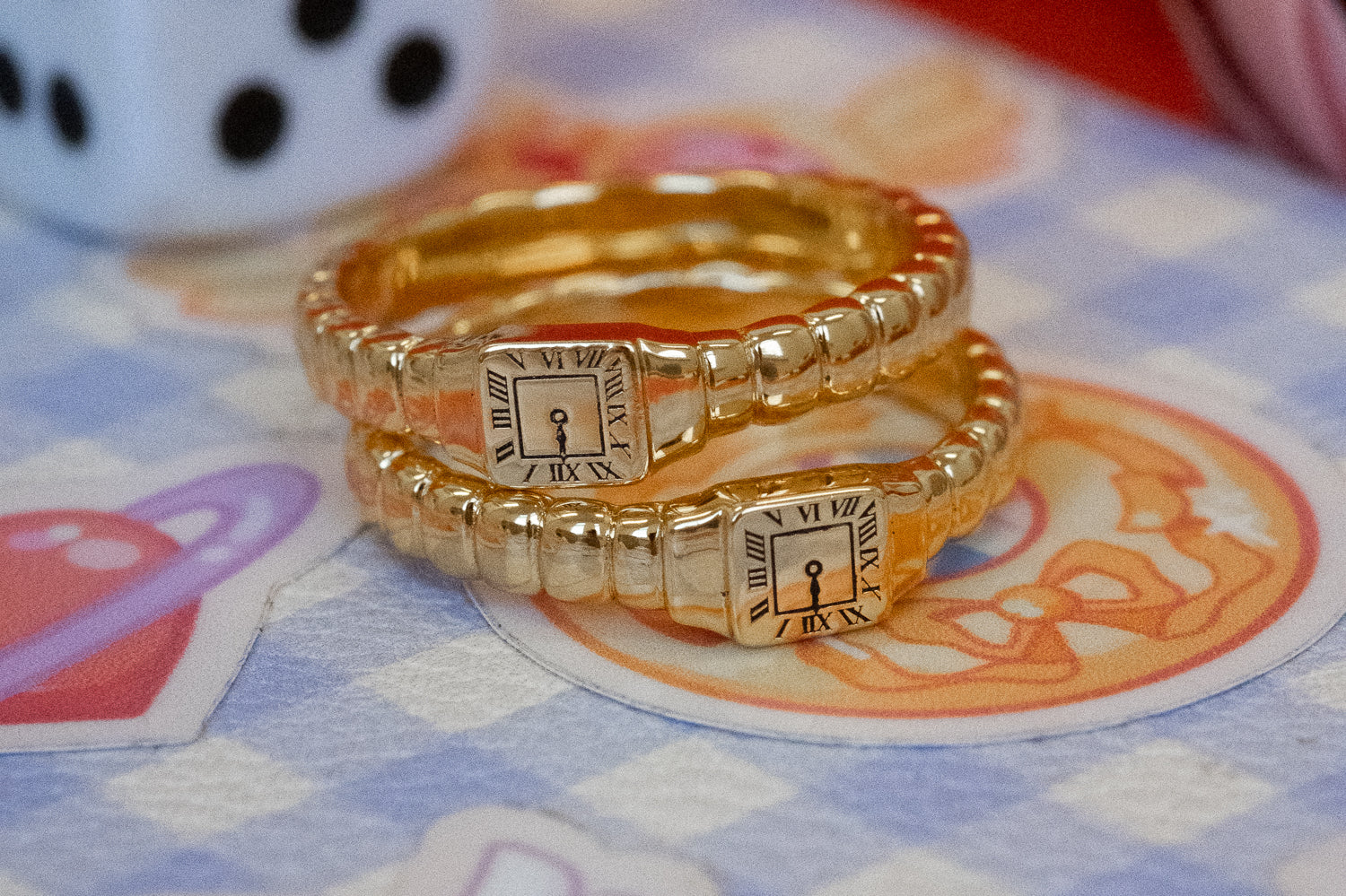 Inspired by the queen herself, Taylor Swift, the Midnights Watch Ring is a must-have for any fan. This unique ring looks like a vintage watch and is inspired by Taylor's stunning Grammys look that had everyone talking (yes, we mean TTPD!).