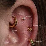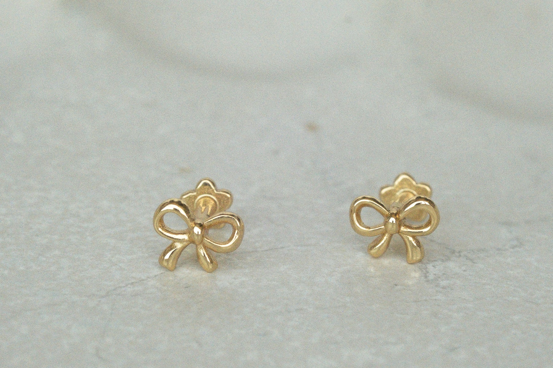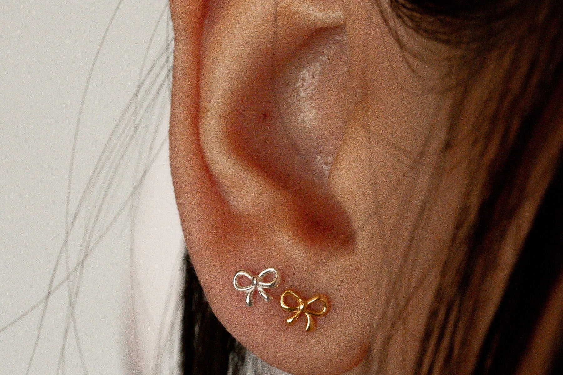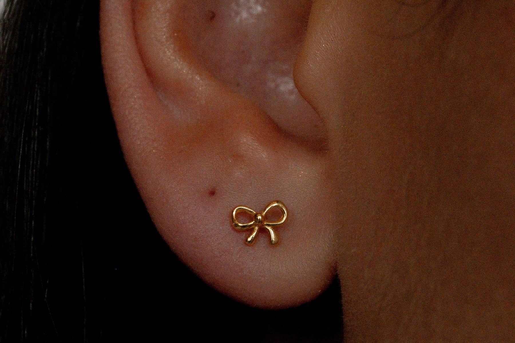 Add a touch of playful elegance to your look with our 18K Gold Filled Mini Bow Piercing Stud. The dainty bow feature adds a charming detail, while the flatback and screw in design make it comfortable to wear. Made with hypoallergenic 18K Gold Filled, it's safe for even the most sensitive skin.