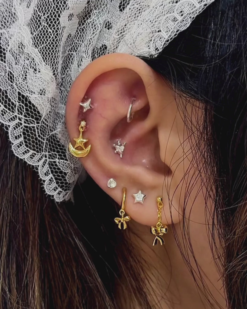 A celestial ode to the magic of girlhood, transformation, and strength. Inspired by the moonlit silhouettes of 90s anime heroines like Sailor Moon, these earrings capture the essence of cosmic beauty and stardust dreams. With a crescent and star motif, they’re for the girl who believes in destiny and makes her own.