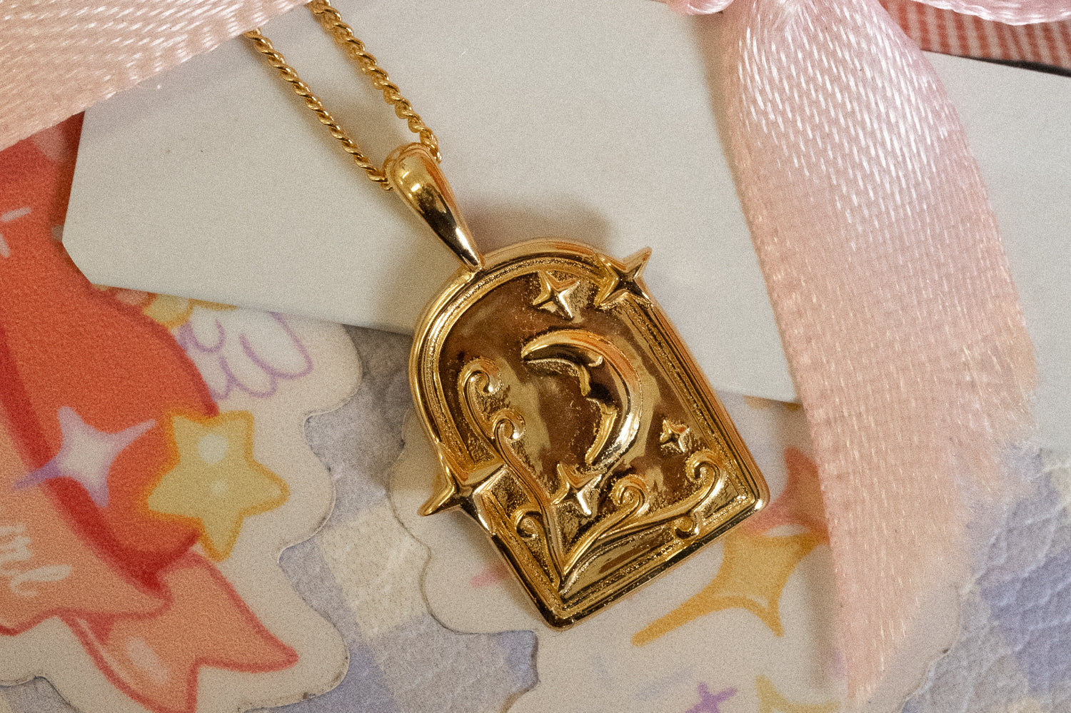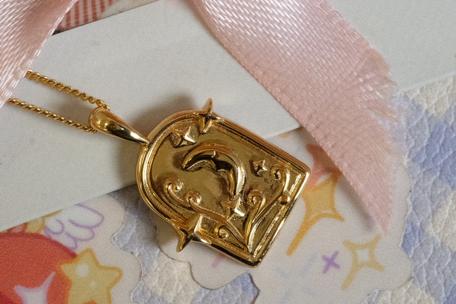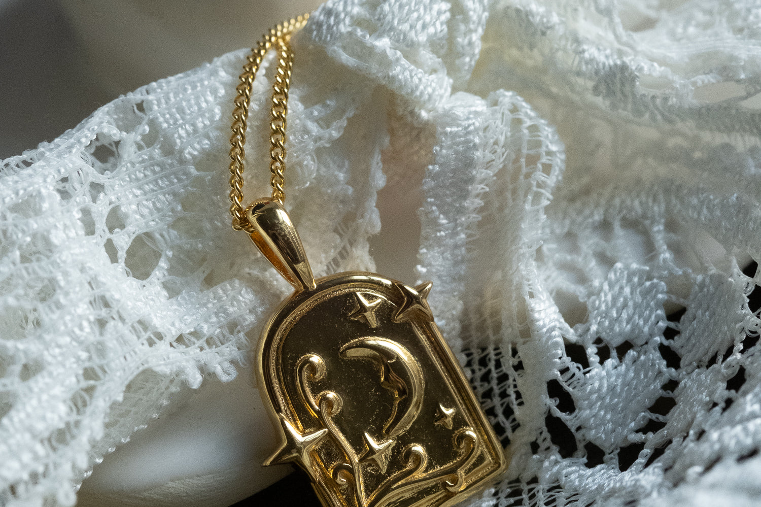 The pendant features a delicate moon design, symbolising dreams and tranquility. Wearing it feels like carrying a piece of the night sky with you, a reminder of peaceful moments and the beauty of the moon.