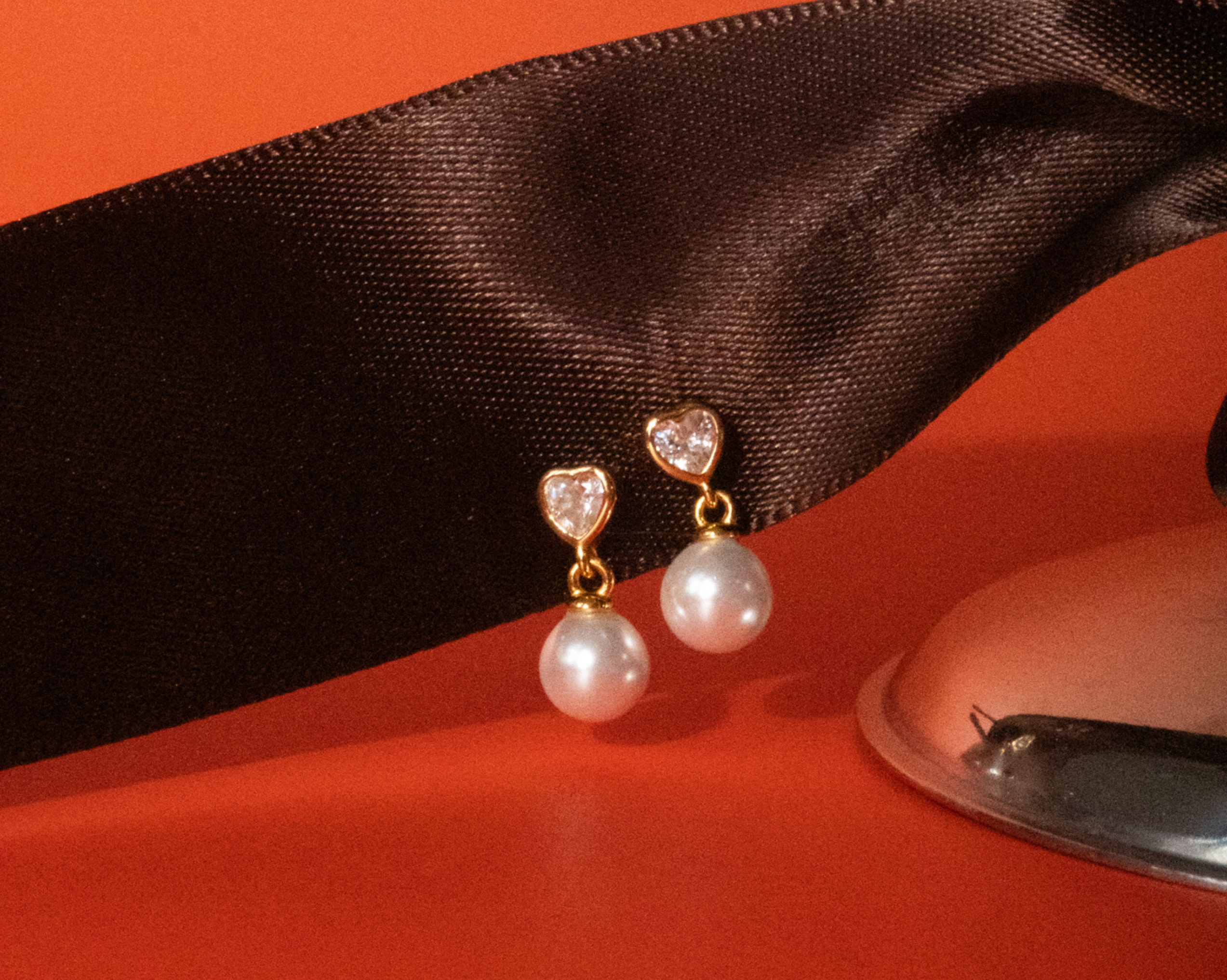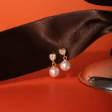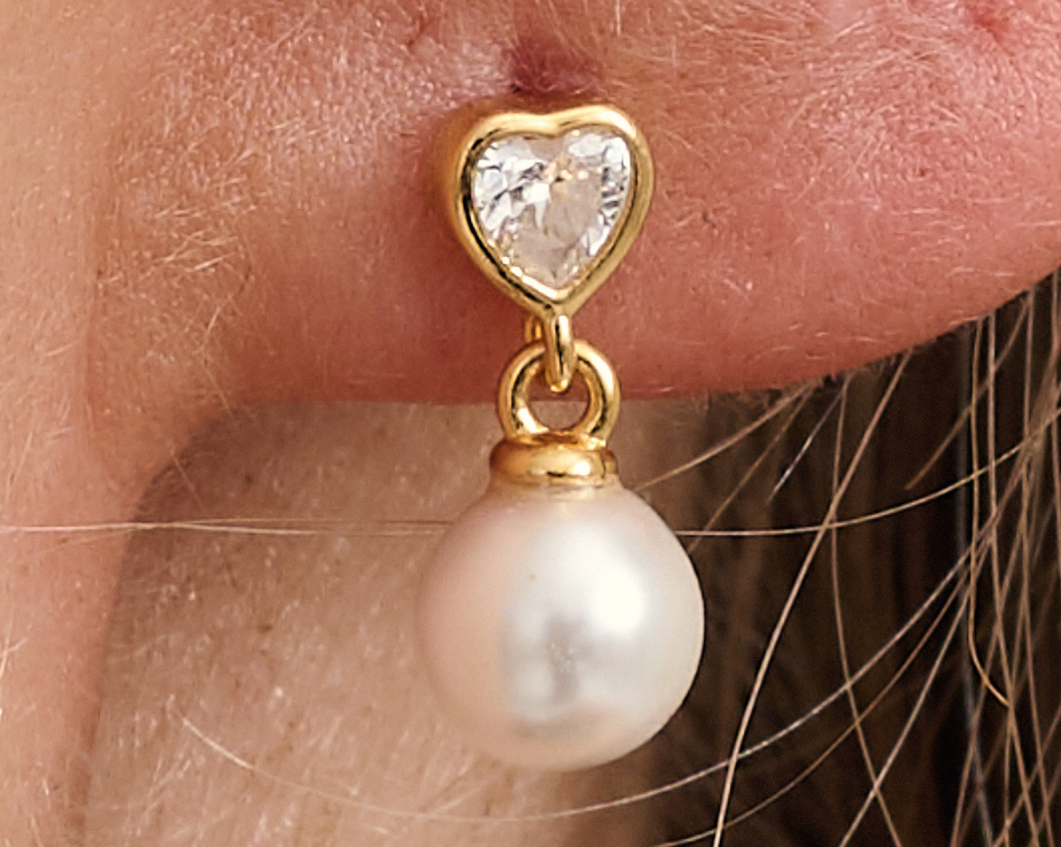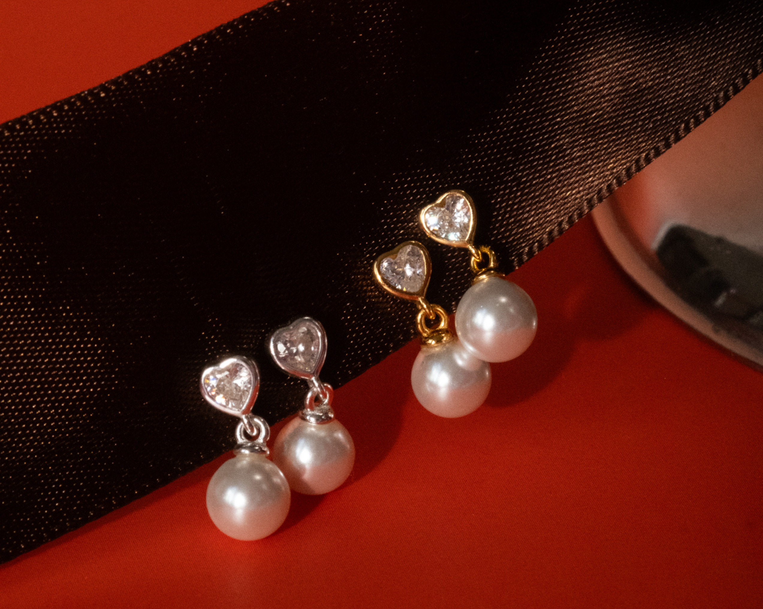 Motunui Heart Pearl Drop Studs - 9K Solid Gold