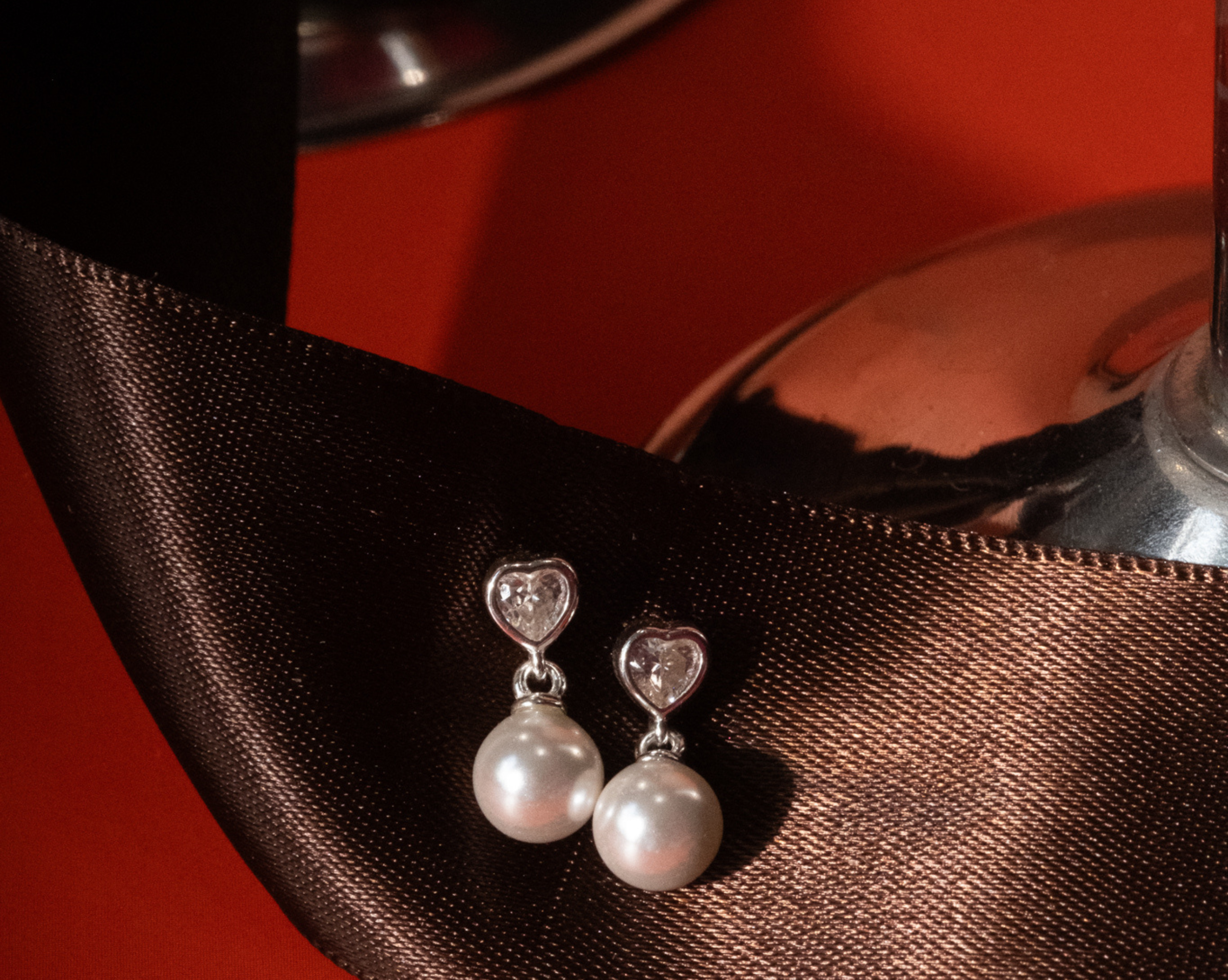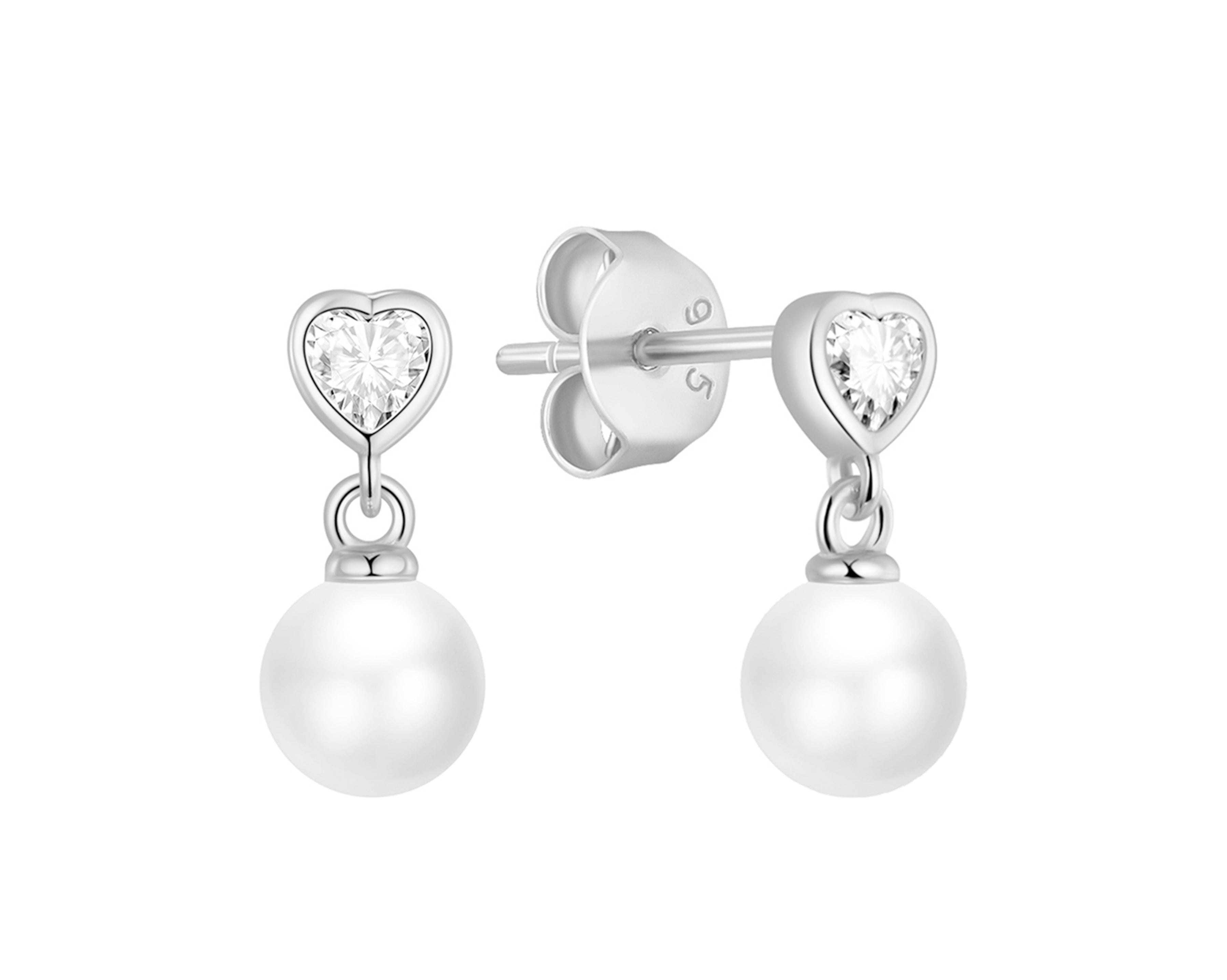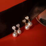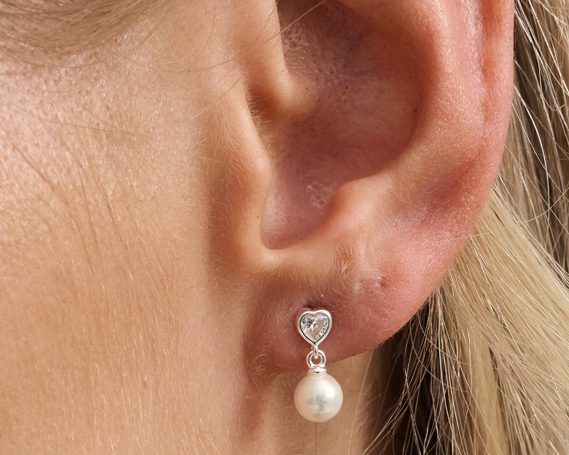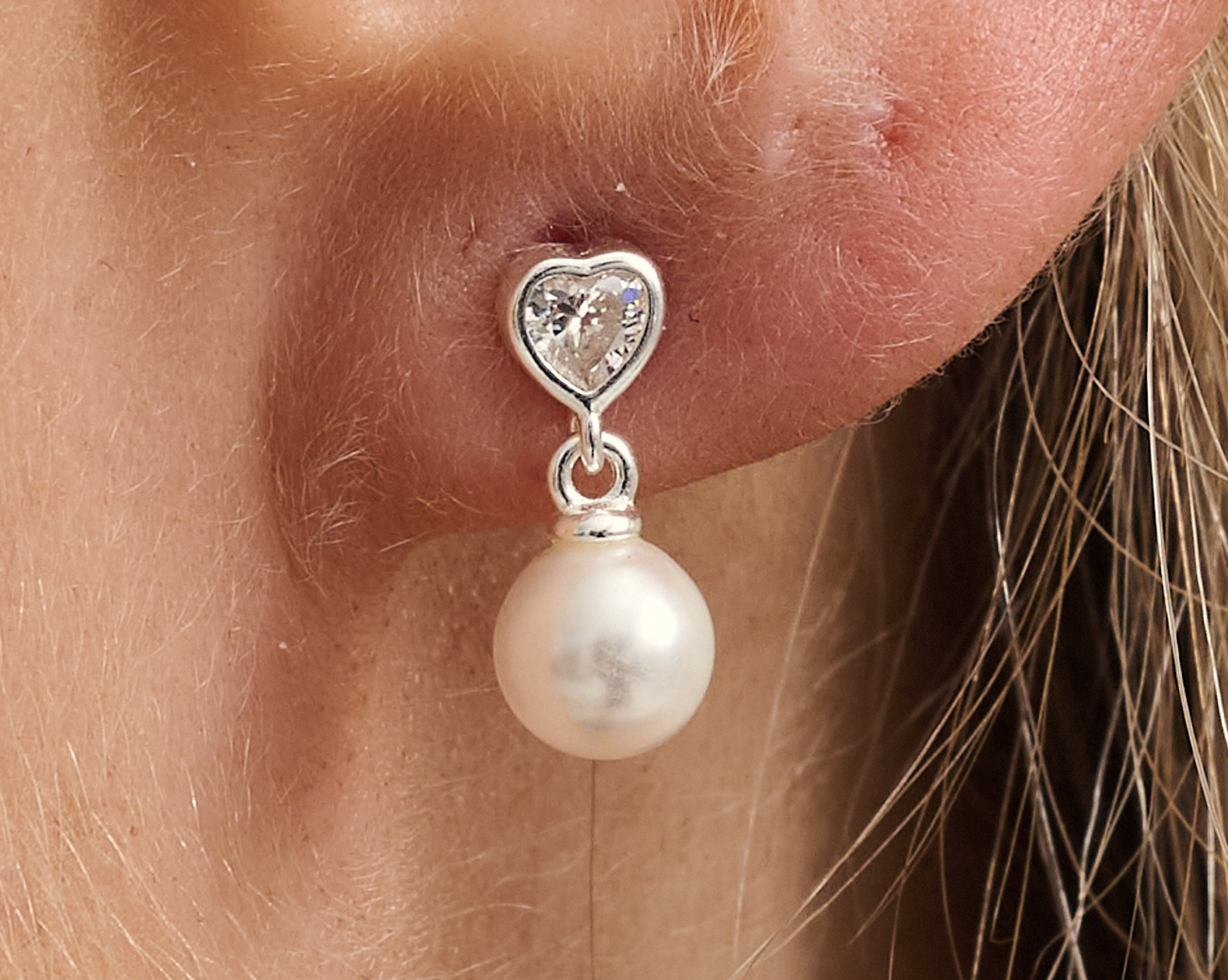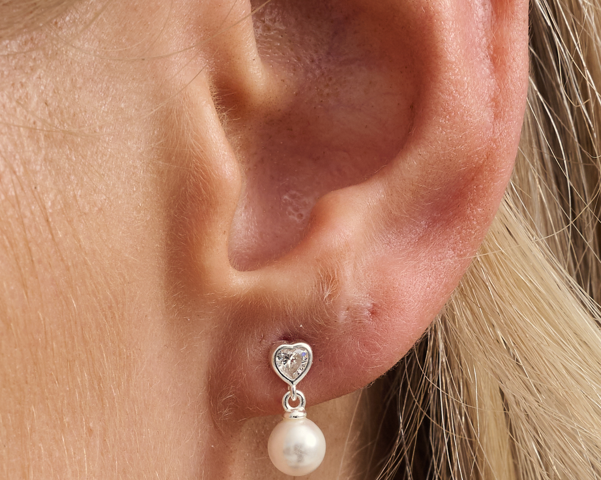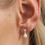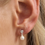 Motunui Heart Pearl Drop Studs - Sterling Silver