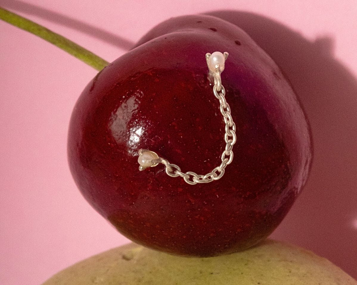 Orla Pearl Double Piercing Stud - Sterling Silver