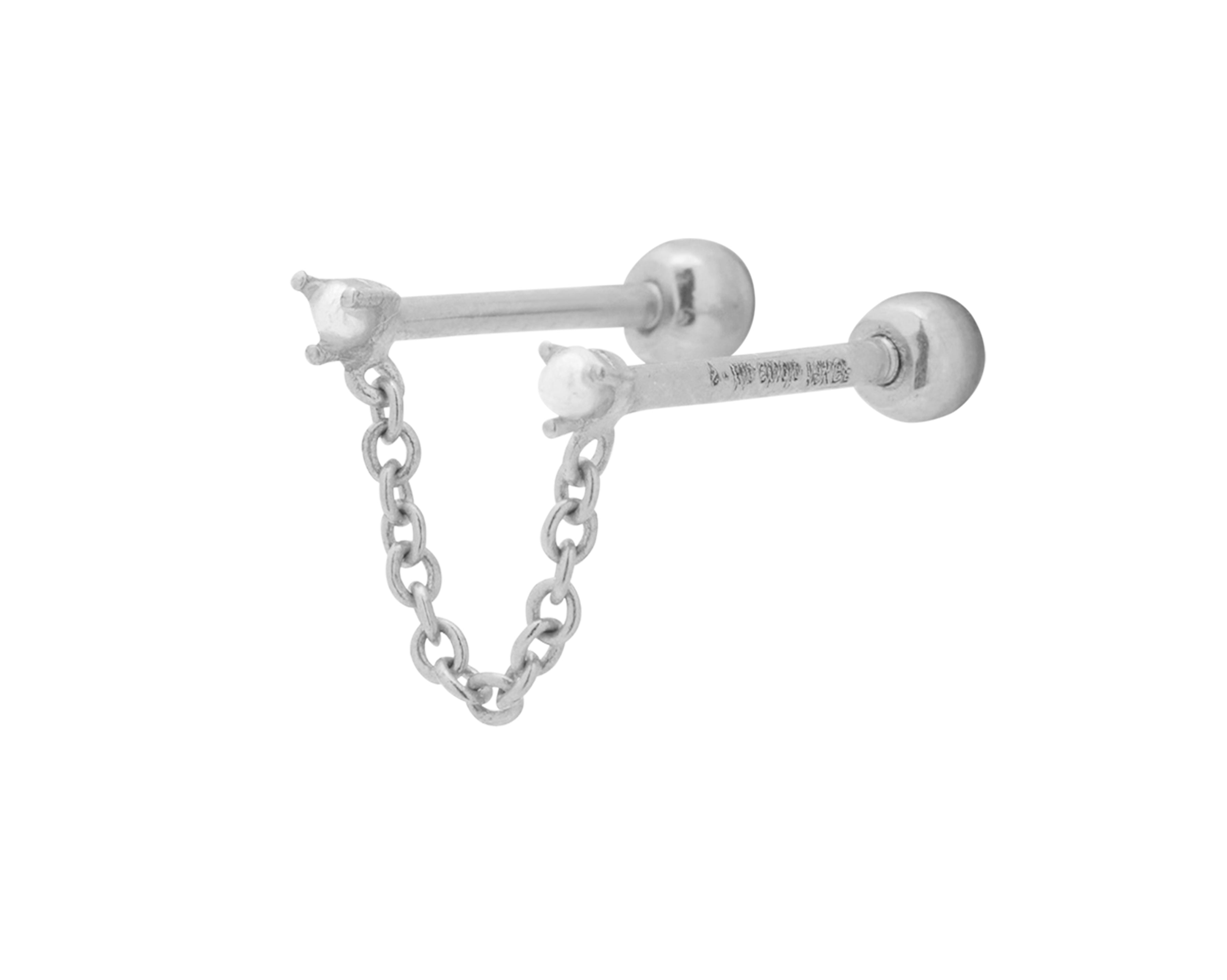 A double-piercing style with a simple pearl design. Equipped with a ball back, this stud is perfect for an earlobe piercing that looks good day and night.