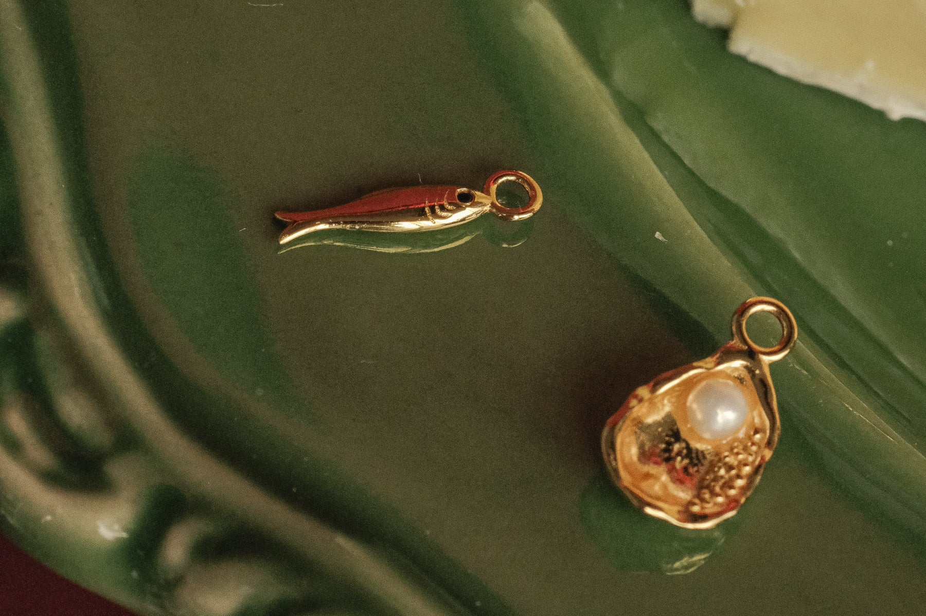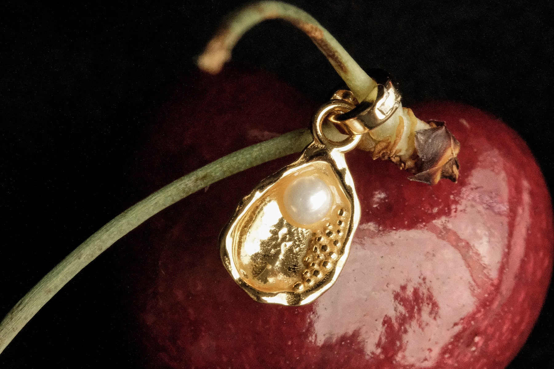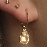 Unveil a beautiful pearl inside our oyster charm! The cutest charm in the collection, that is perfect to pair with our pearly pieces. Each charm comes with a removeable bail, so you can wear each as a pendant on a necklace, or without as a charm for your earring.