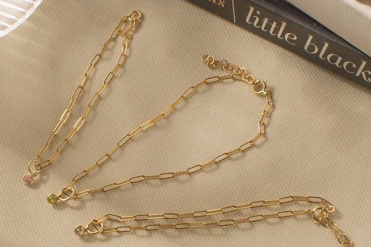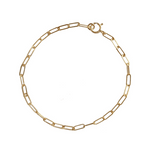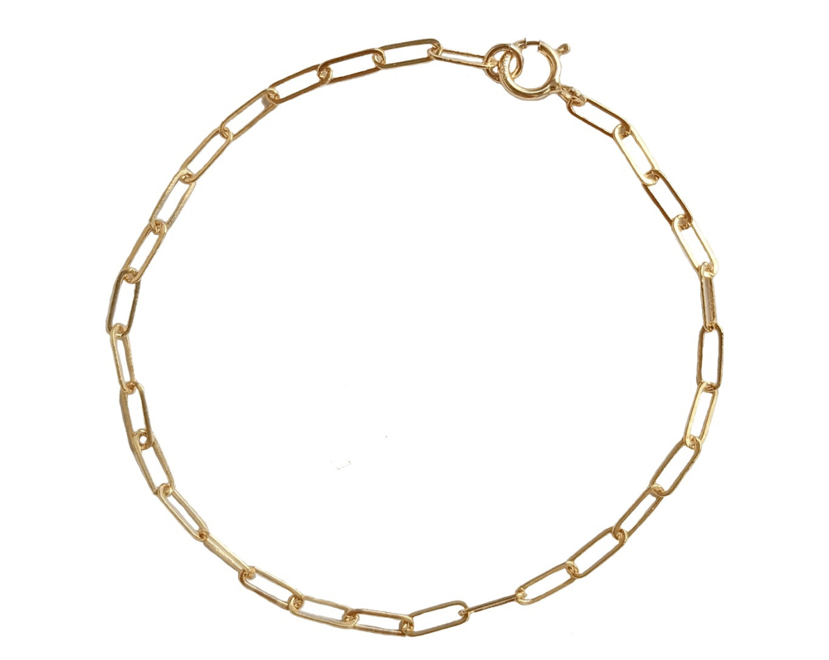 Our unique and hand constructed Paperclip Chain Bracelet is a dainty and minimal option for your everyday look. Made with 14k gold fill components, this rectangular link chain can be fully customised with our mix and match charms and pendants for completely personalised look.