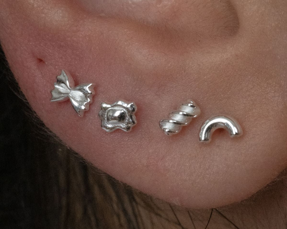 Introducing the Pasta Shapes Earrings Set—perfect for pasta lovers! This fun and quirky set features four different pasta shapes: ravioli, fusilli, a bow, and macaroni. Each earring is a mini tribute to your favourite Italian dishes. Wear them and show off your love for all things pasta!