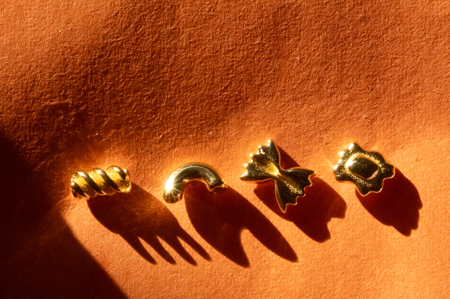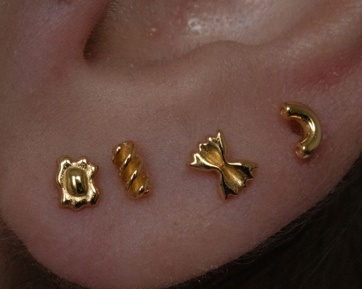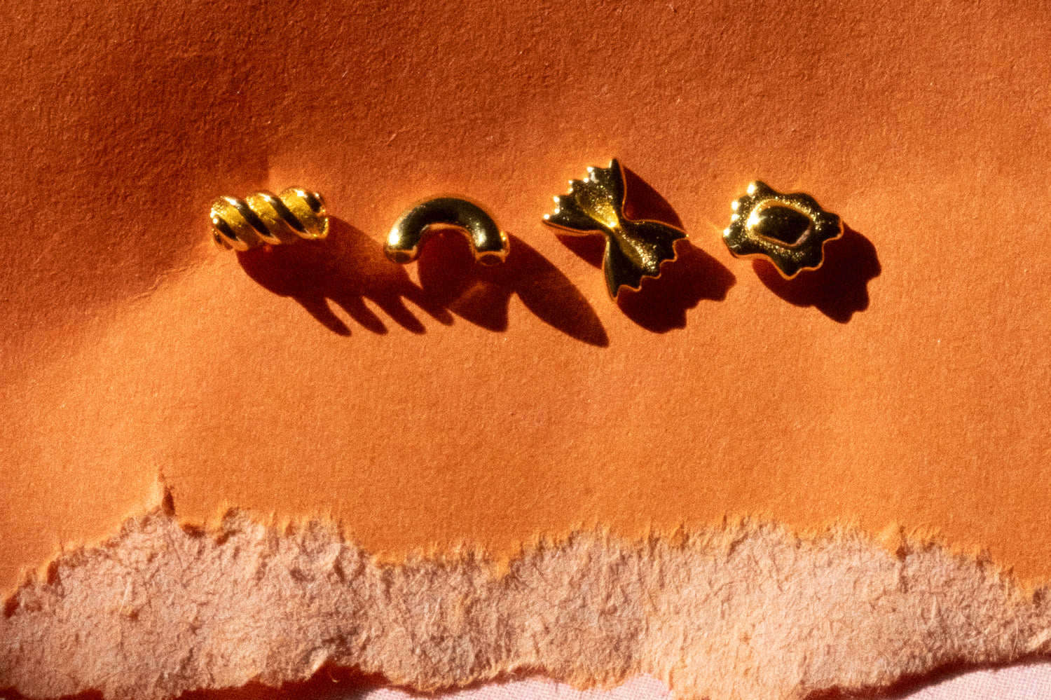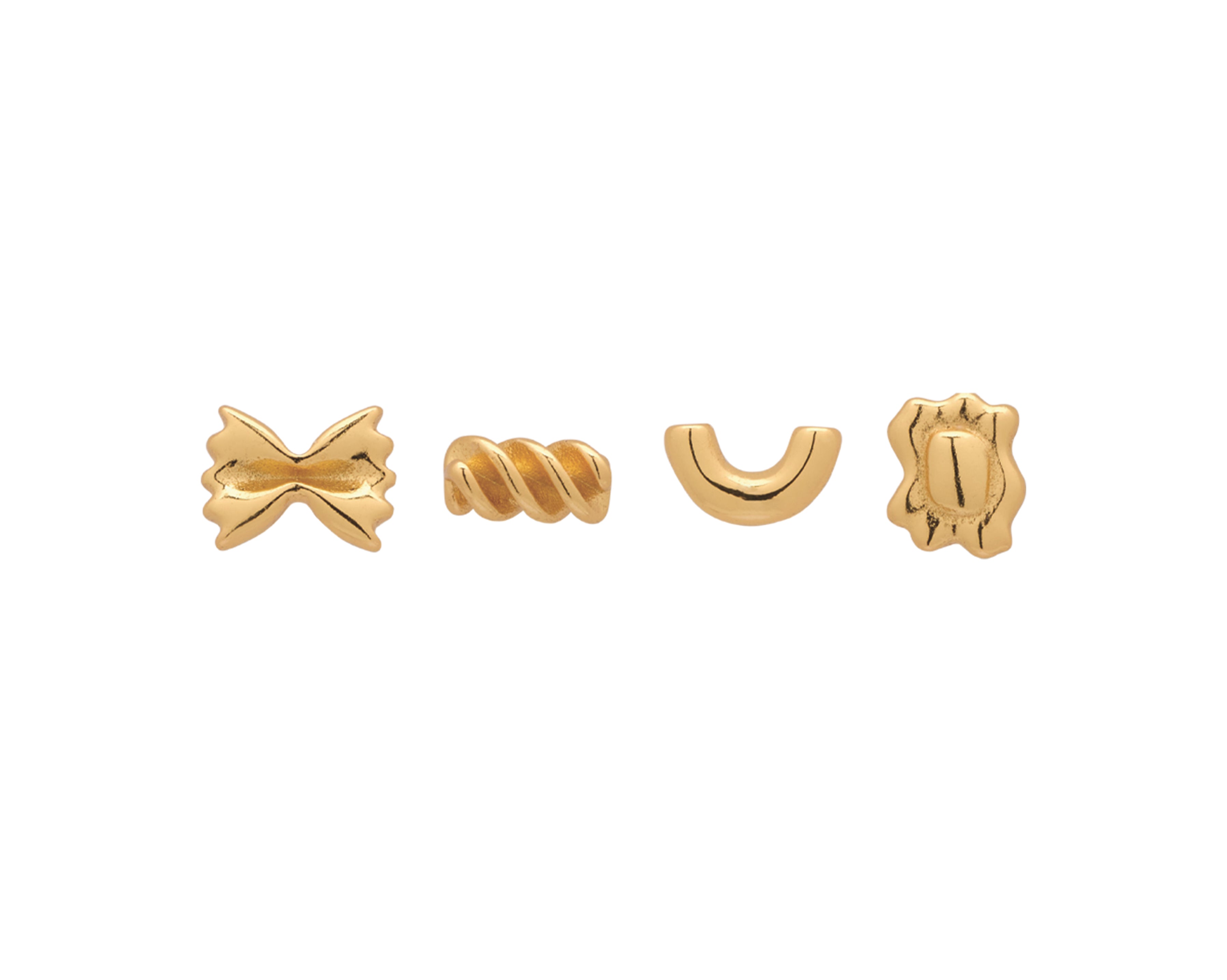 Introducing the Pasta Shapes Earrings Set—perfect for pasta lovers! This fun and quirky set features four different pasta shapes: ravioli, fusilli, a bow, and macaroni. Each earring is a mini tribute to your favourite Italian dishes. Wear them and show off your love for all things pasta!