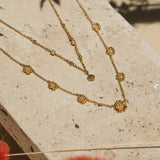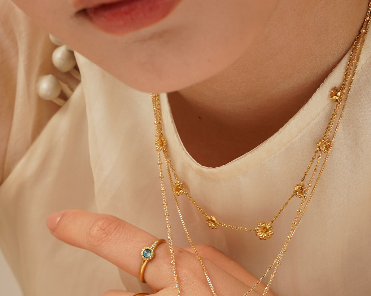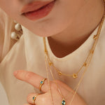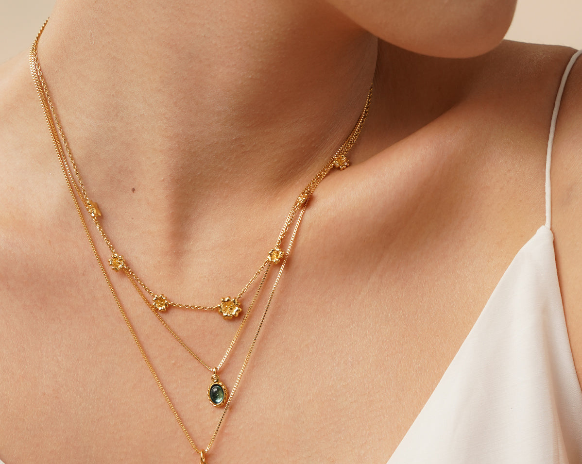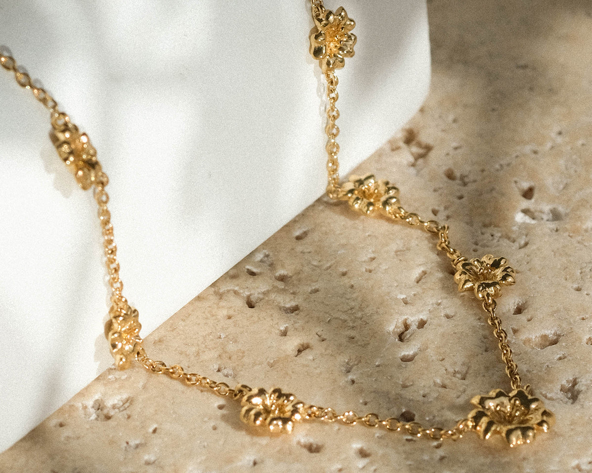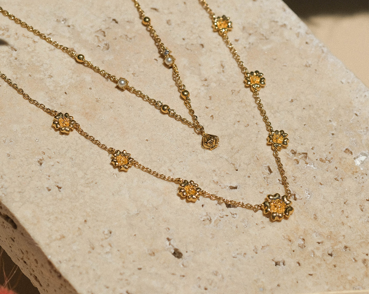 Celebrations of Tet can't be without blossoms - peach blossoms in the north and yellow apricot blossoms in the south. Paying homage to both ends, but with a name that directly resonates with Founder Chi's Hanoian roots, the Peach Blossom Oscillating Necklace is a summery delight to add to your collection.