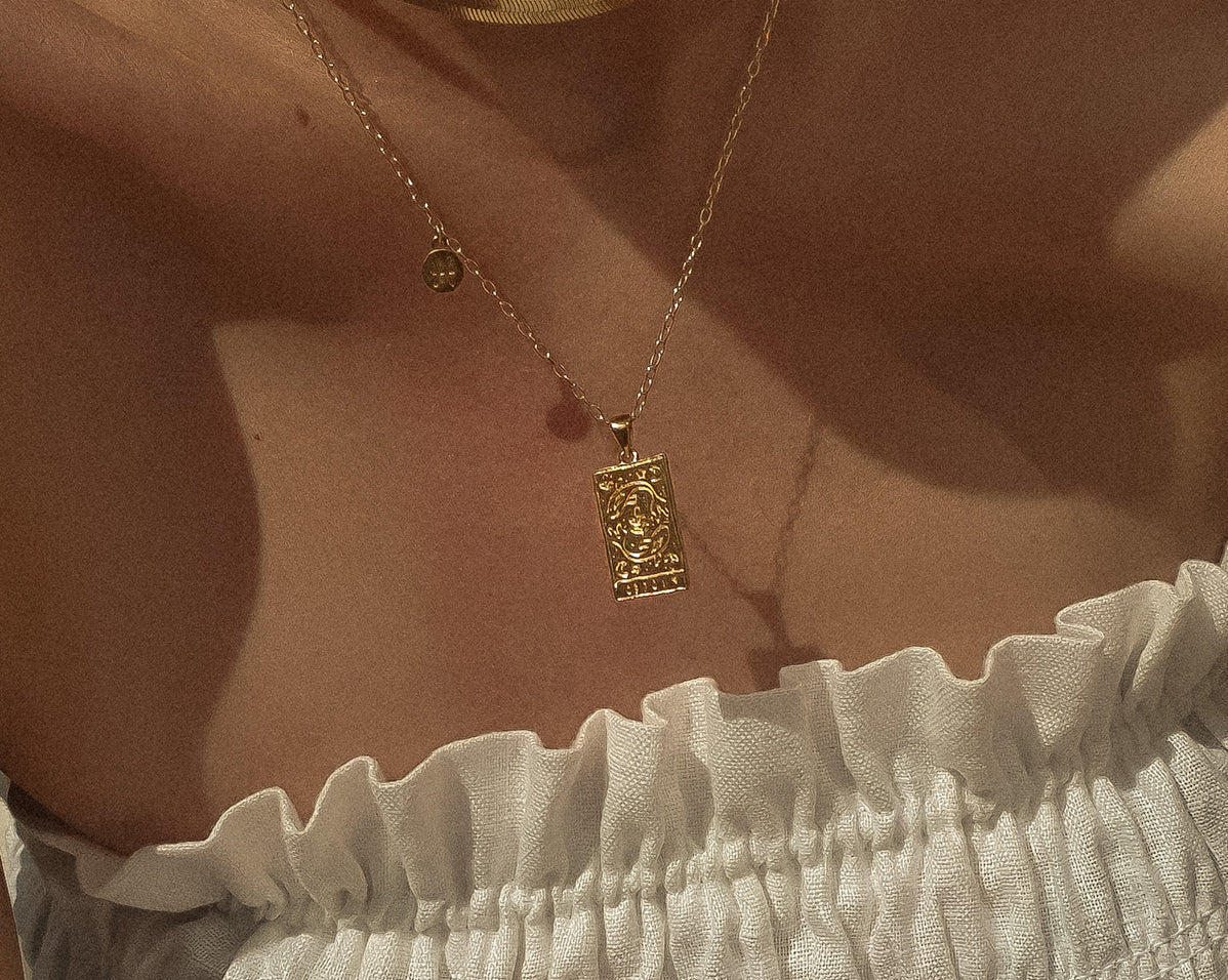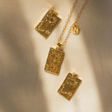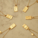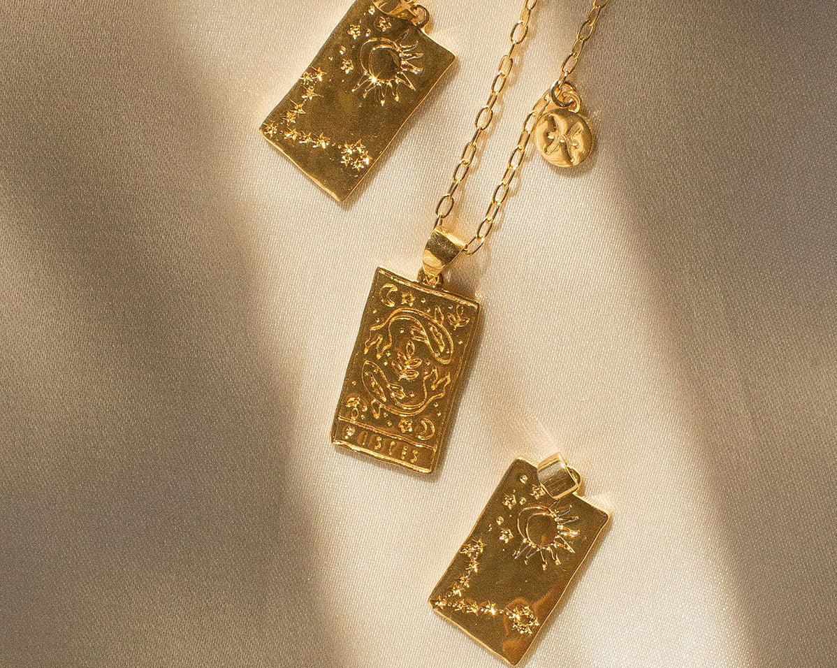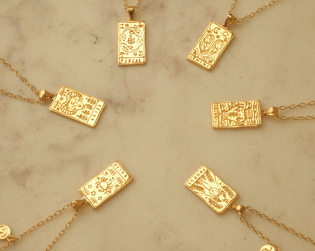 The collection features 12 pendant necklaces with a double-sided tarot-inspired star sign pendant, and a customizable mini star sign charm. Inspired by tarot cards, and the magical world of astrology, the 12 necklaces are customizable with two signs – sun and moon signs – or those with signs on the cusp.
