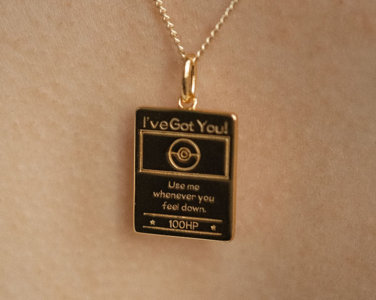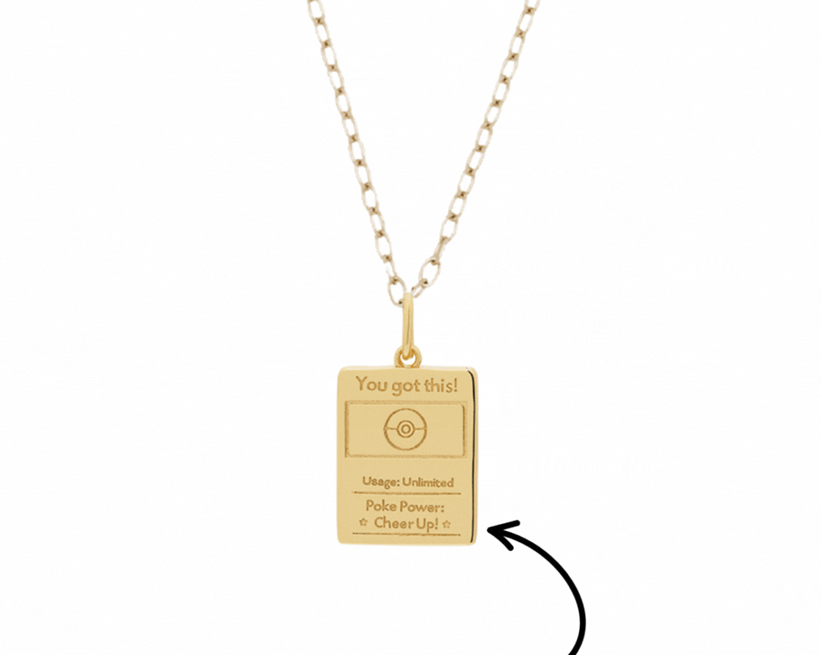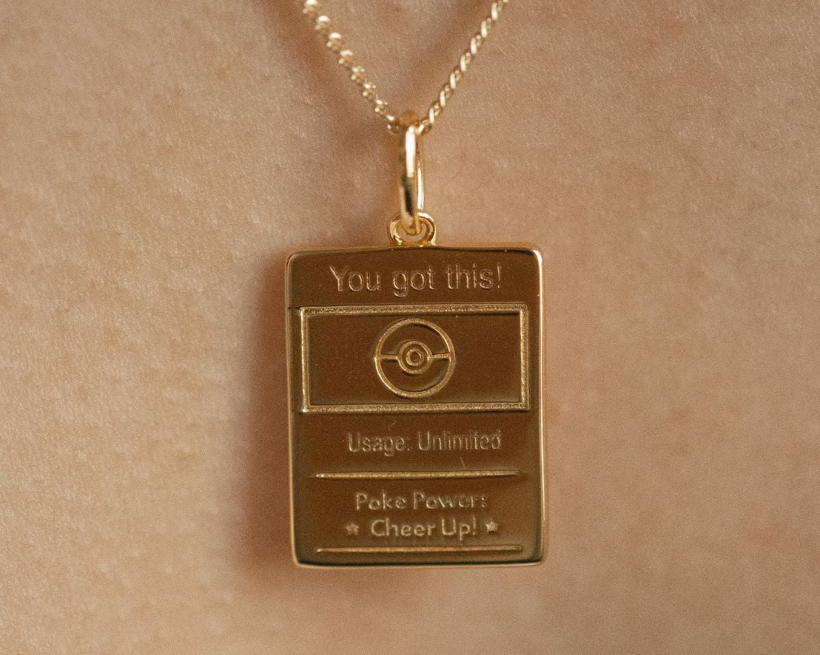 Inspired by the magic of trading cards and the joy of collecting moments, the Pokémon Trading Card Pendant is a heartfelt tribute to both nostalgia and support. Styled like a classic Pokémon card, this mini pendant brings playful sentimentality to life—combining childhood memories with words we all need to hear.