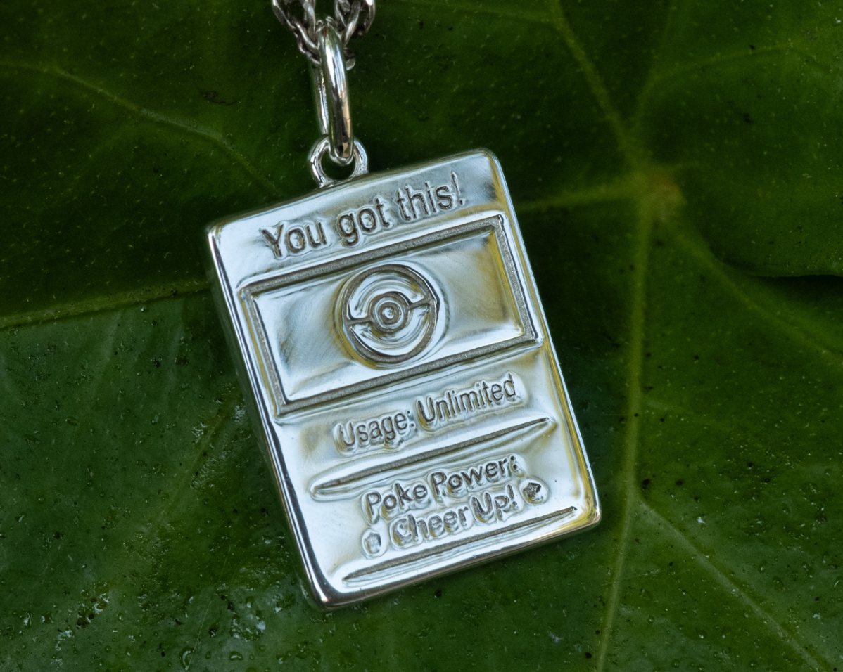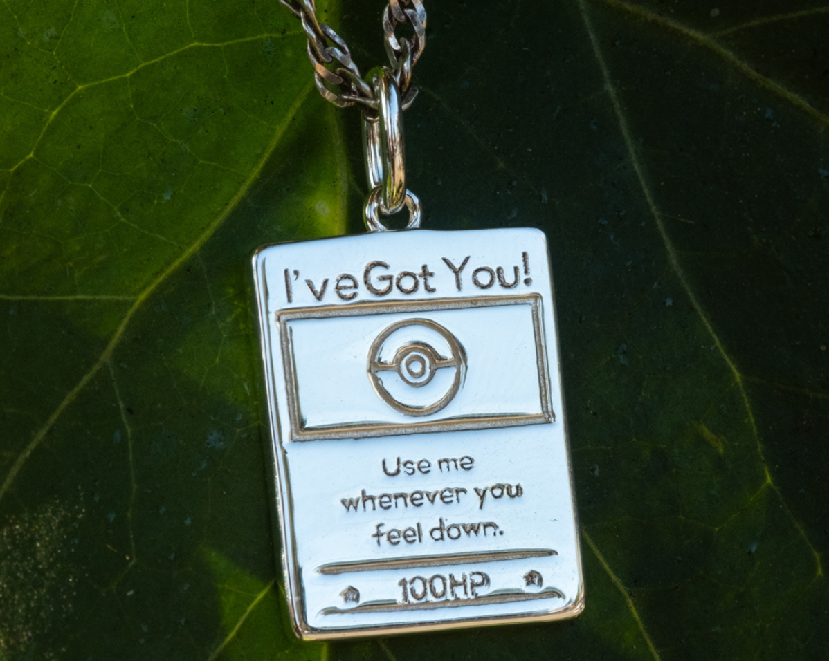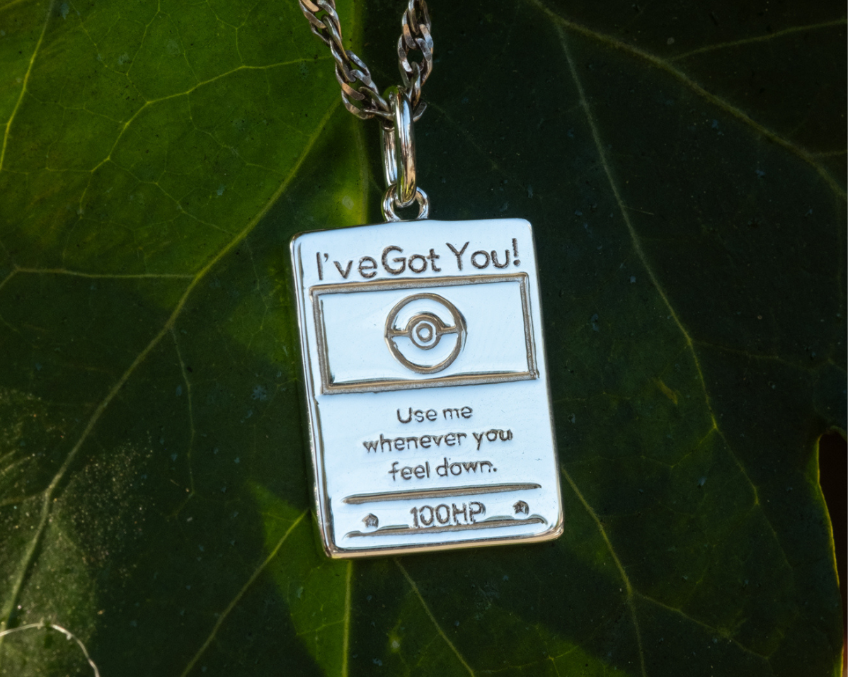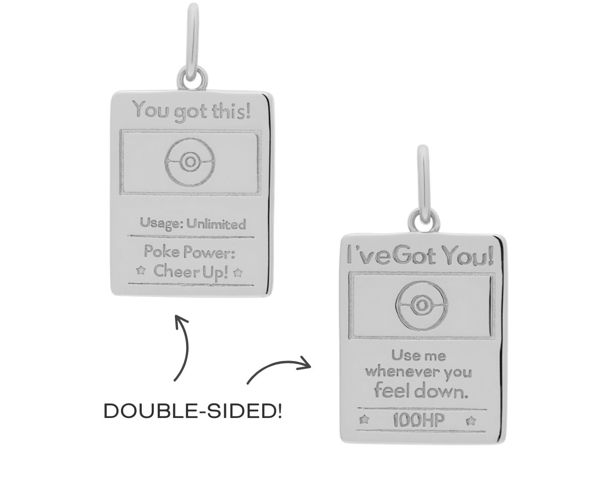 Inspired by the magic of trading cards and the joy of collecting moments, the Pokémon Trading Card Pendant is a heartfelt tribute to both nostalgia and support. Styled like a classic Pokémon card, this mini pendant brings playful sentimentality to life—combining childhood memories with words we all need to hear.