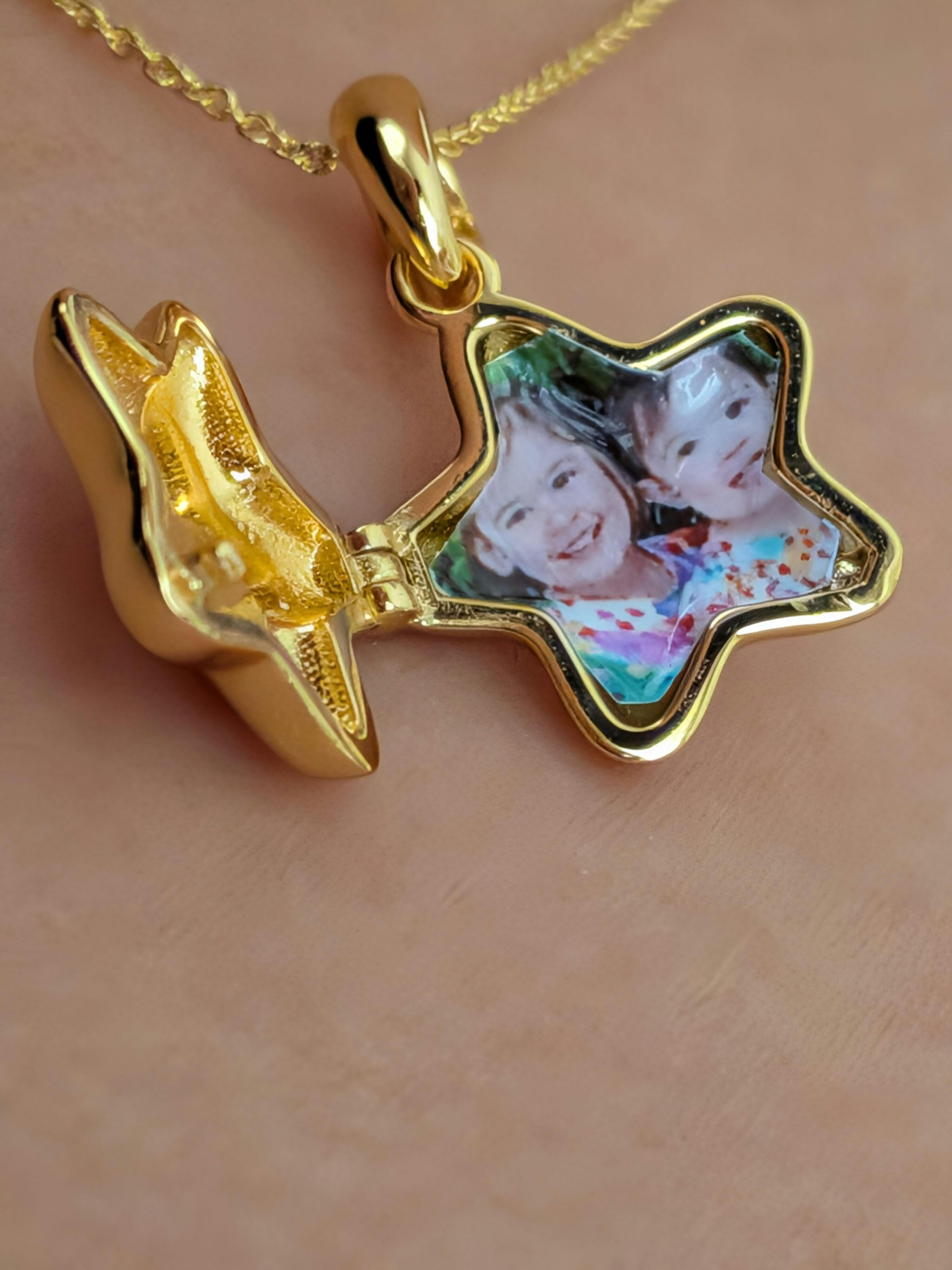 Polly is a puffy star-shaped locket designed with a playful, Y2K-inspired silhouette. Made for the nostalgic and the bold, it opens to reveal a hidden compartment perfect for photos, keepsakes, or a secret engraving. The smooth surface is ideal for custom engraving on the outside or inside, making it as personal as it is cute, whether you’re keeping it minimal or marking it with something cheeky.