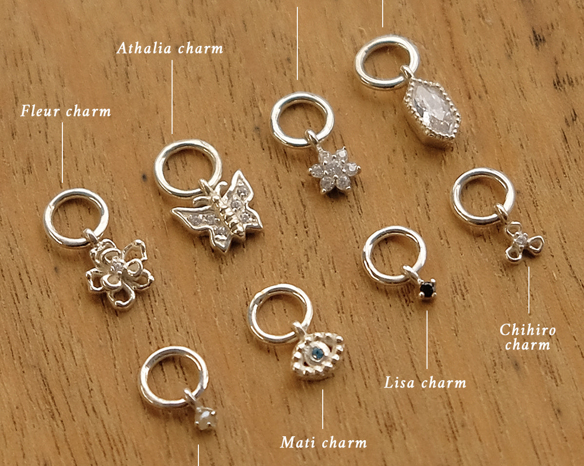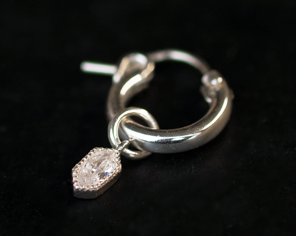 The descendent of the Rei Marquise Dangle Single Stud, this charm pays homage to its ancestor with a matching marquise cut stone in white. Add this petite charm to any of your hoop earrings for a customised unique look.