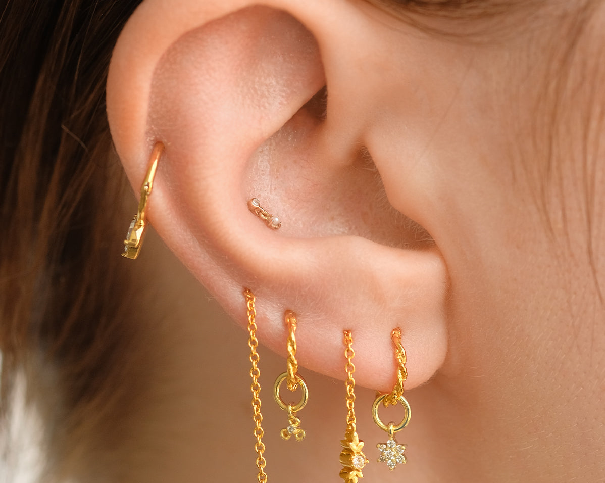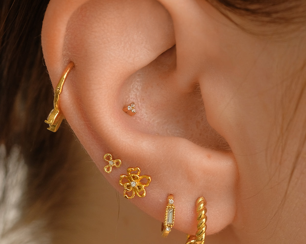 Inspired by the desire to have beautiful and high quality earrings for all our ear piercings, the Piercing Collection is suitable for fresh and healed piercings. With lobe friendly hoops and helix friendly ball back studs, the Piercing Collection can cater for fresh and healing piercings with our 14k solid gold earrings whilst our classic 18k gold fill earrings can be worn in all healed ear piercings. Made ethically in our factories in Mumbai, India, each Piercing Collection piece has been carefully crafted by our artisans just for you.