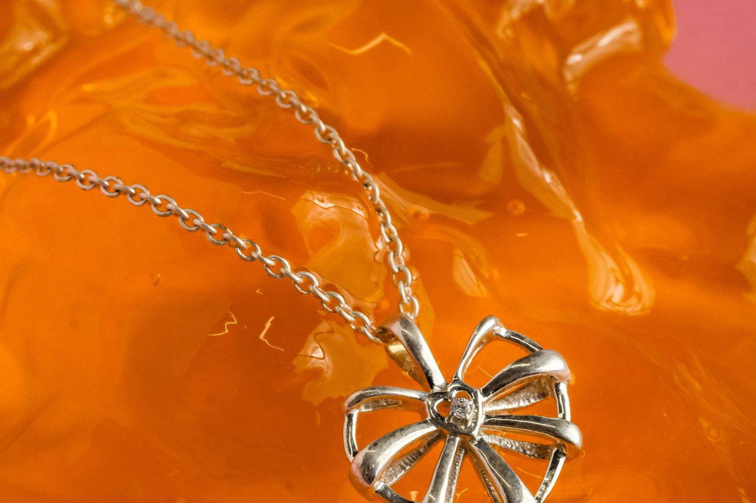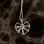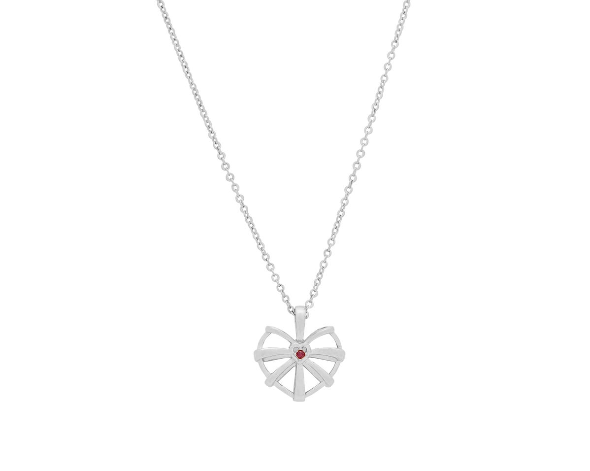 Inspired by our childhood favourite series, Sailor Moon, this pendant is a tribute to her ribbon-style transformation from Usagi to Sailor Moon. The ribbon detail is seen expanding from a centre ruby stone, representing her heart brooch.