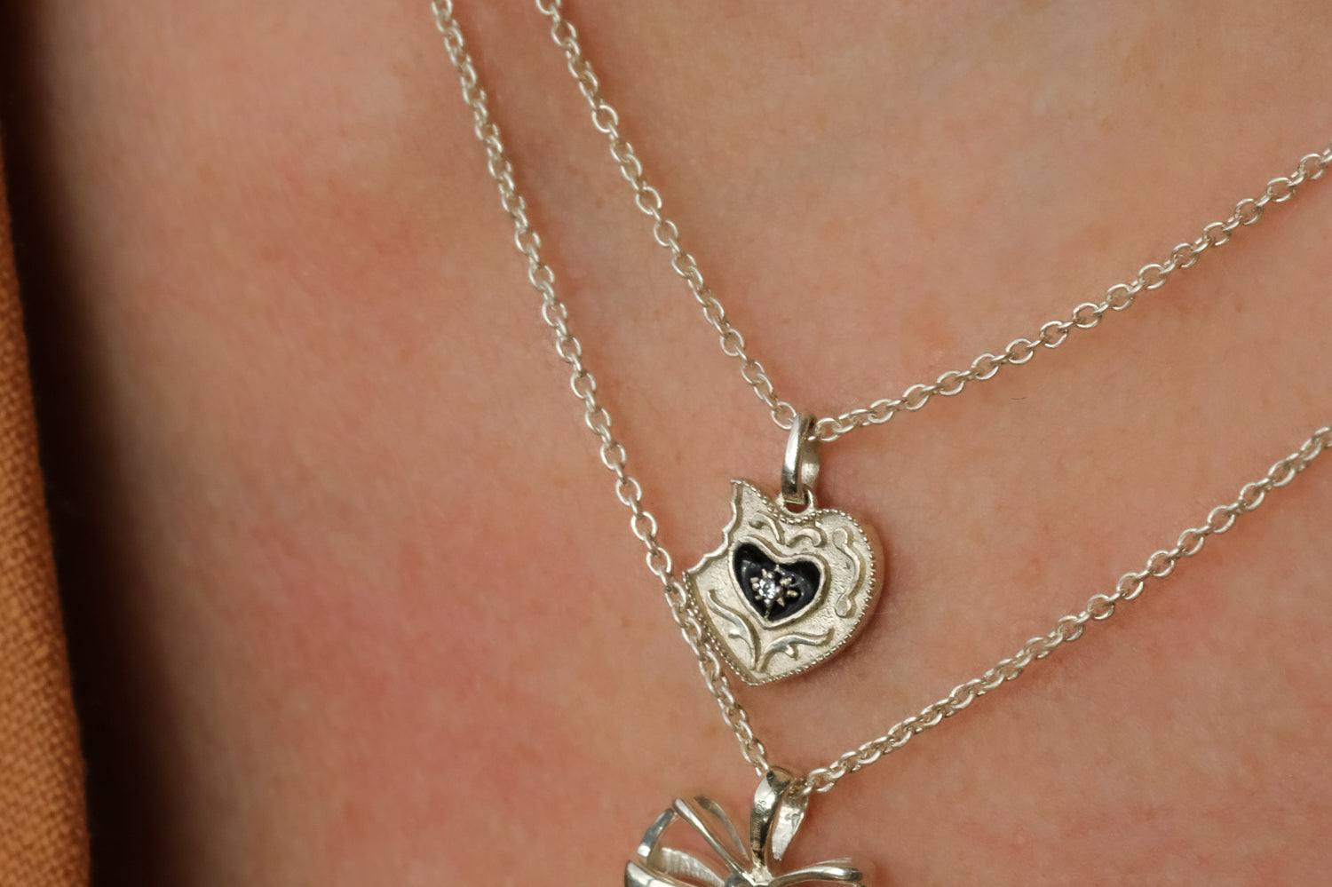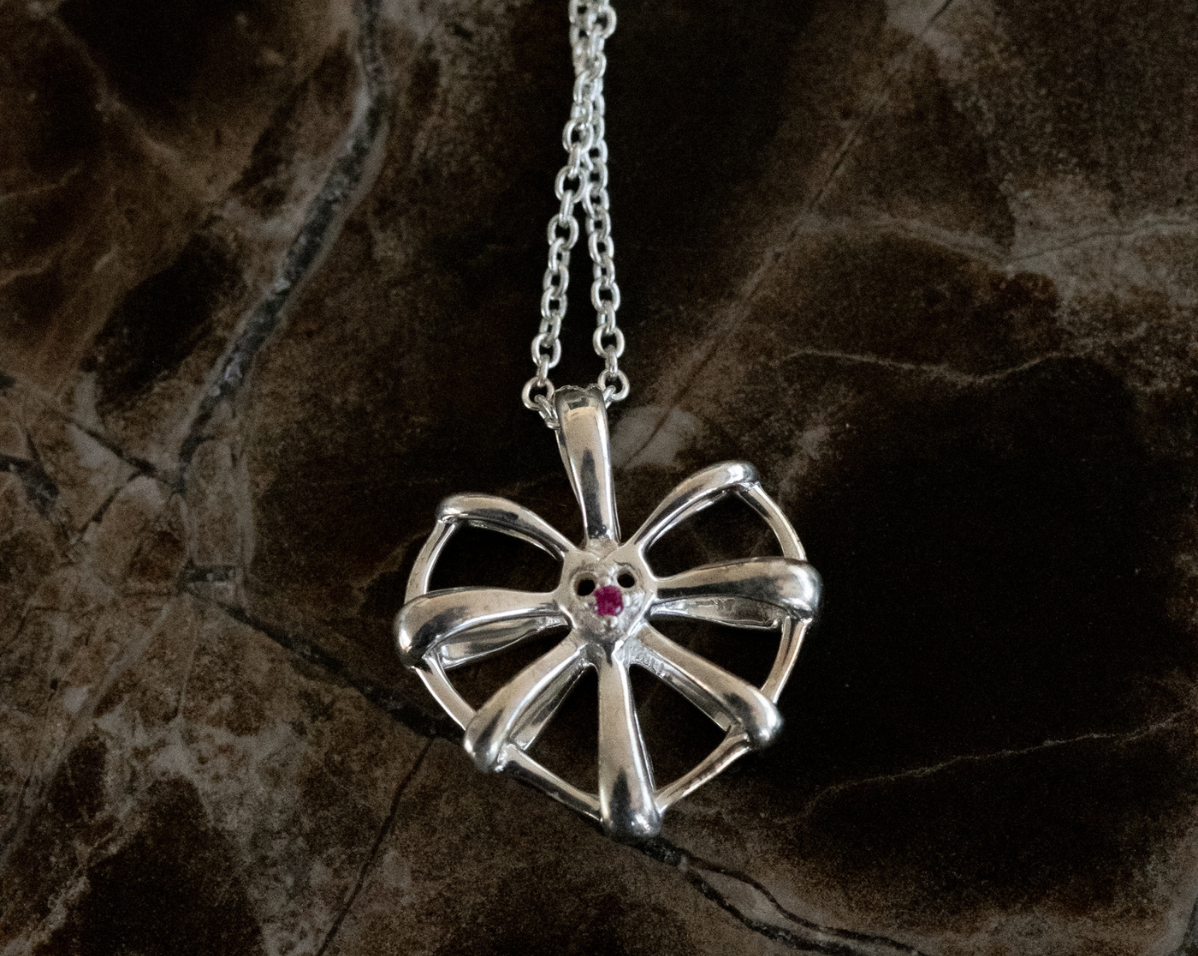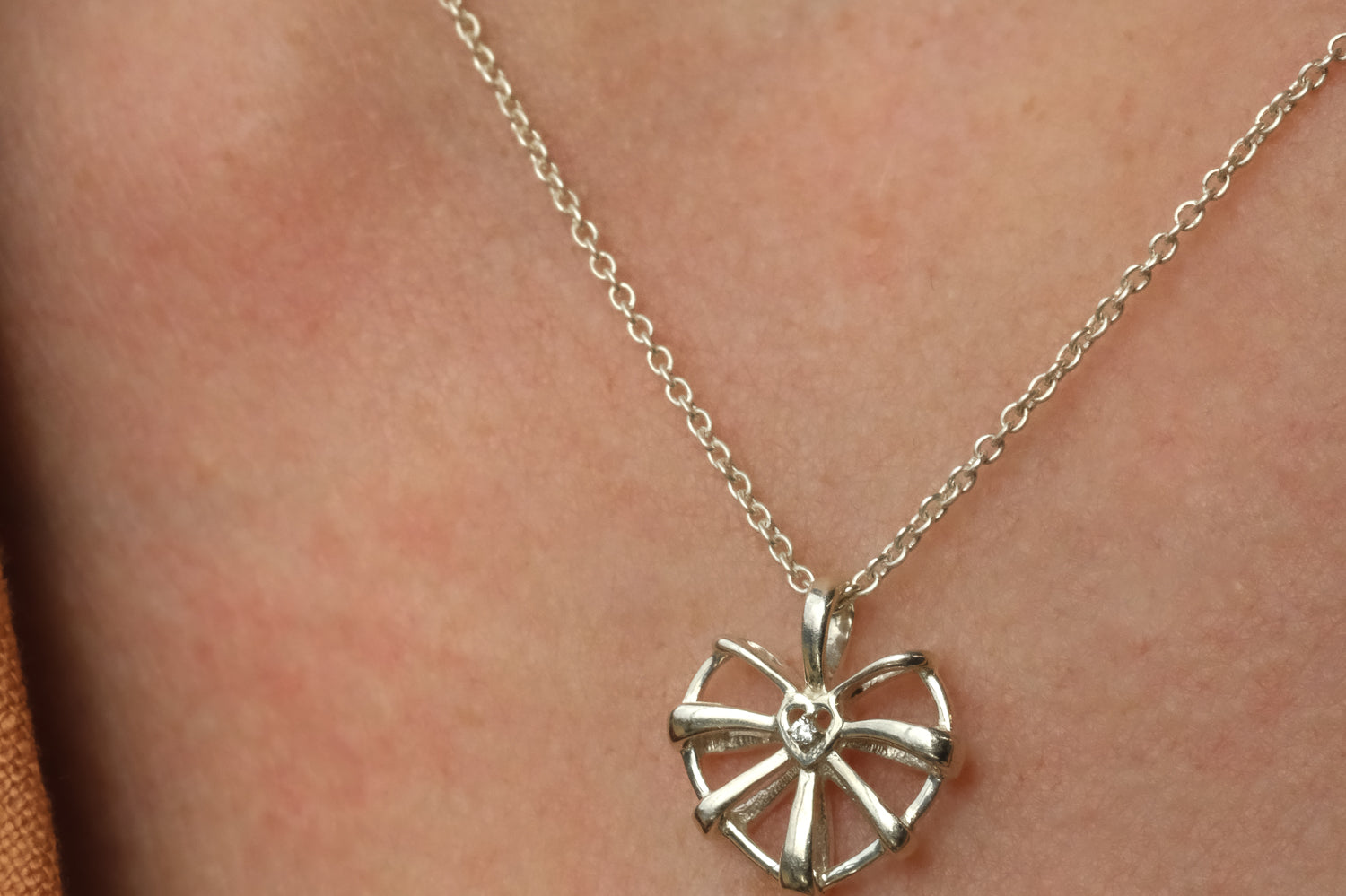 Ribbon Heart Necklace Sterling Silver- SAMPLE SALE