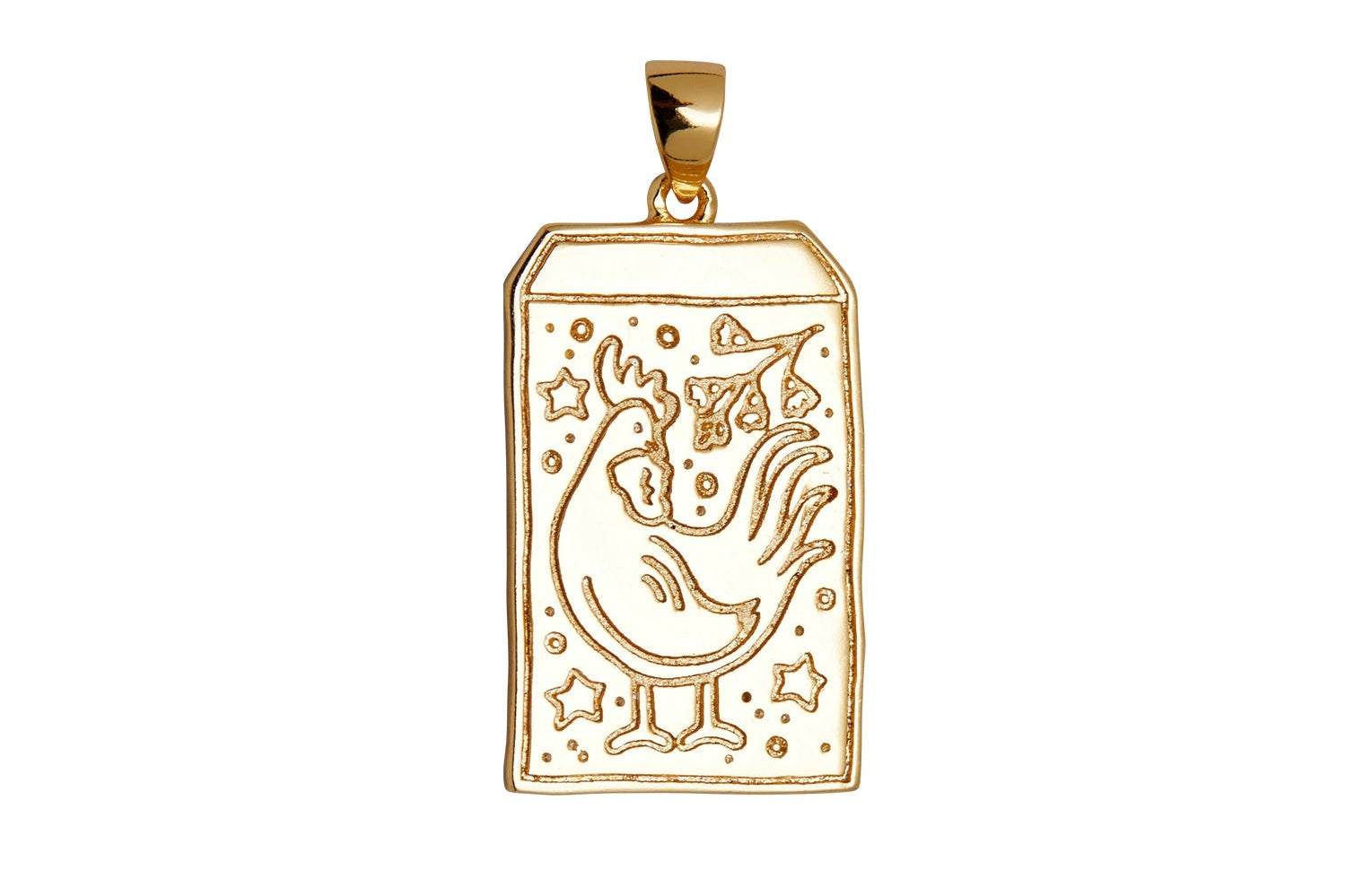 - The back of the pendant reads Dậu meaning Rooster in Vietnamese