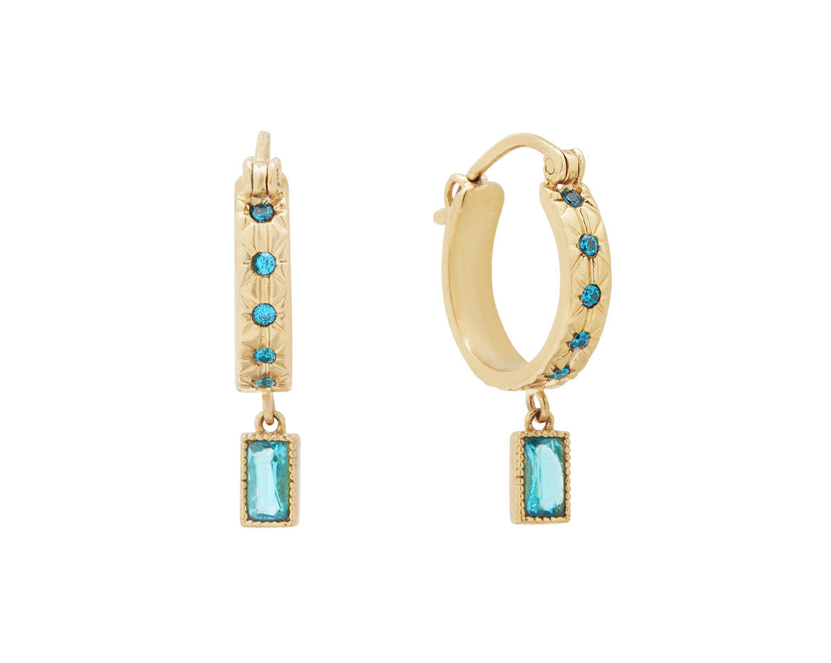 Inspired by our cult favourite Serah and Renne Baguette Huggie Hoops from our Limited Edition La Femme Collection, these Holiday Sara Hoops each feature one of the twelve birthstones for a unique customised look.