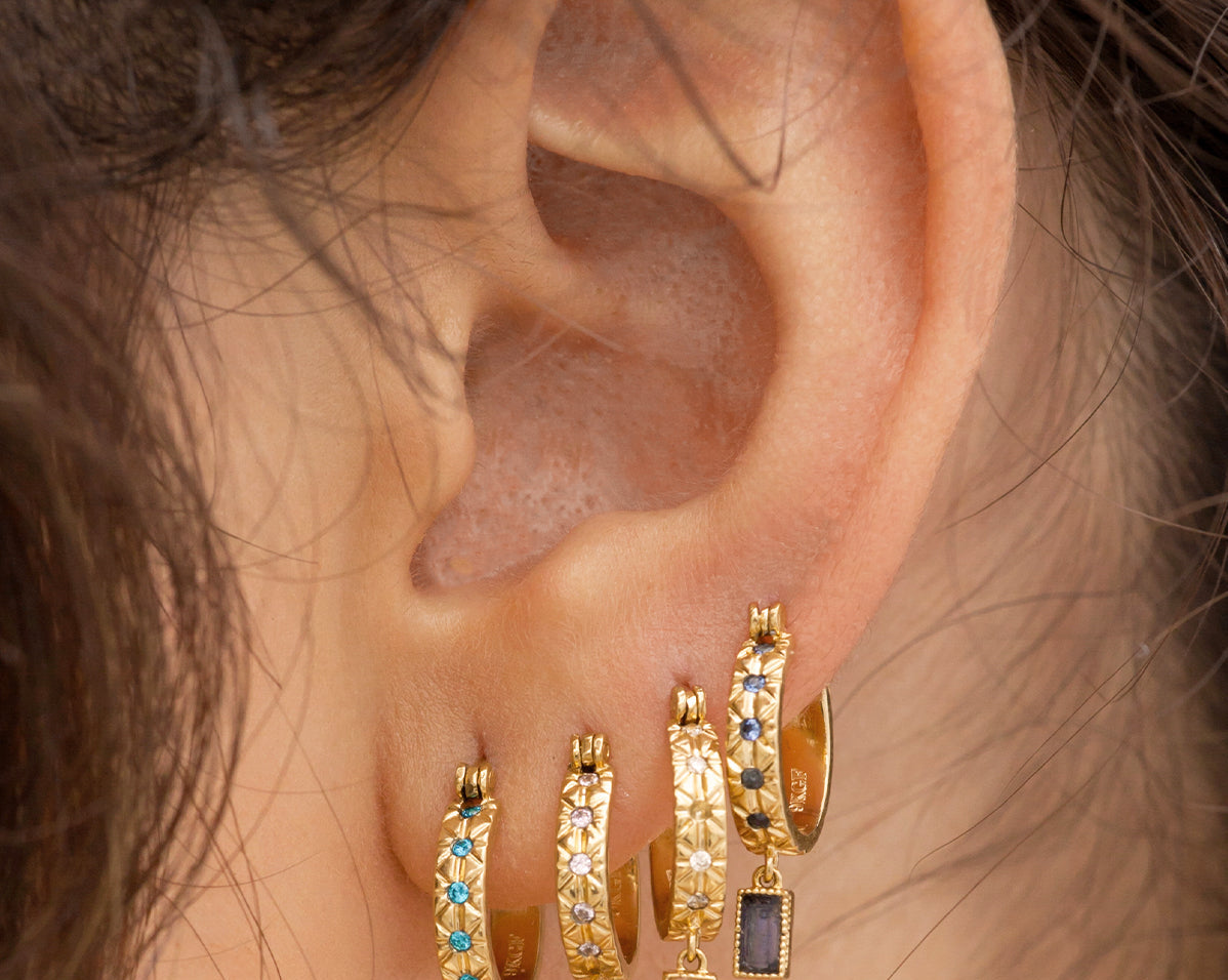 Inspired by our cult favourite Serah and Renne Baguette Huggie Hoops from our Limited Edition La Femme Collection, these Holiday Sara Hoops each feature one of the twelve birthstones for a unique customised look.