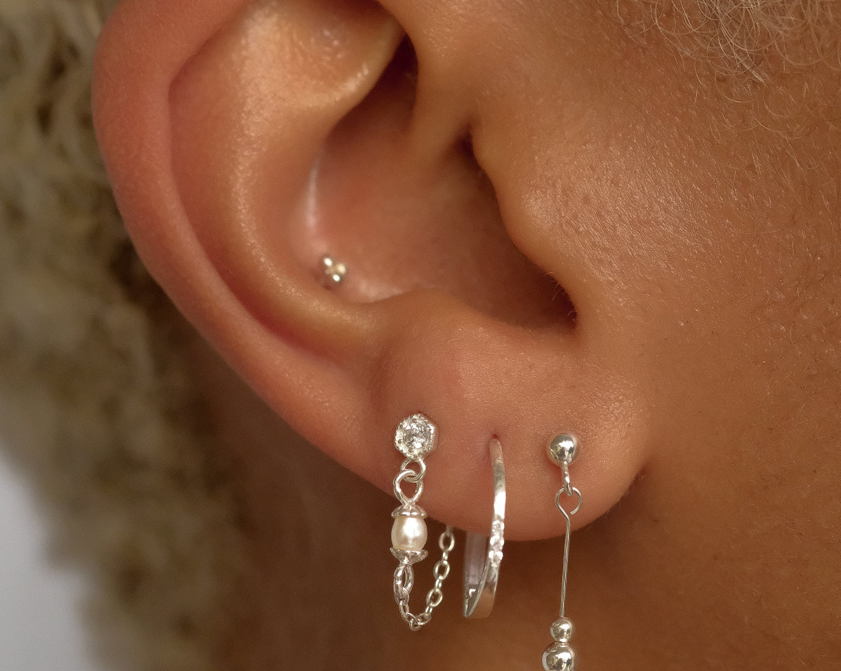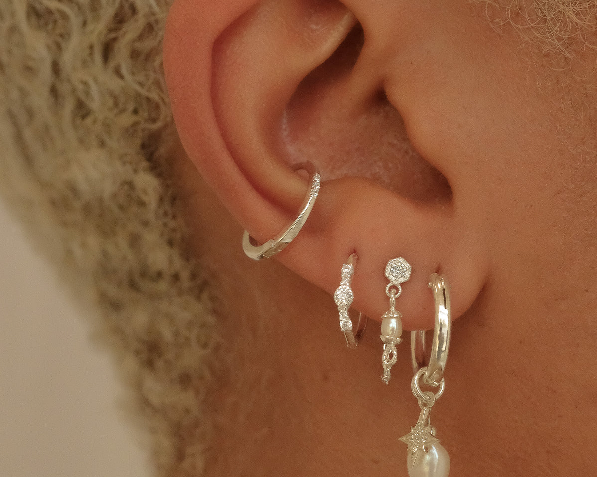 Inspired by the desire to have beautiful and high quality earrings for all our ear piercings, the Piercing Collection is suitable for fresh and healed piercings. With lobe friendly hoops and helix friendly ball back studs, the Piercing Collection can cater for fresh and healing piercings.