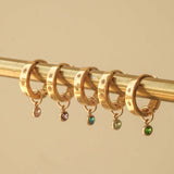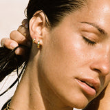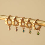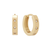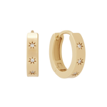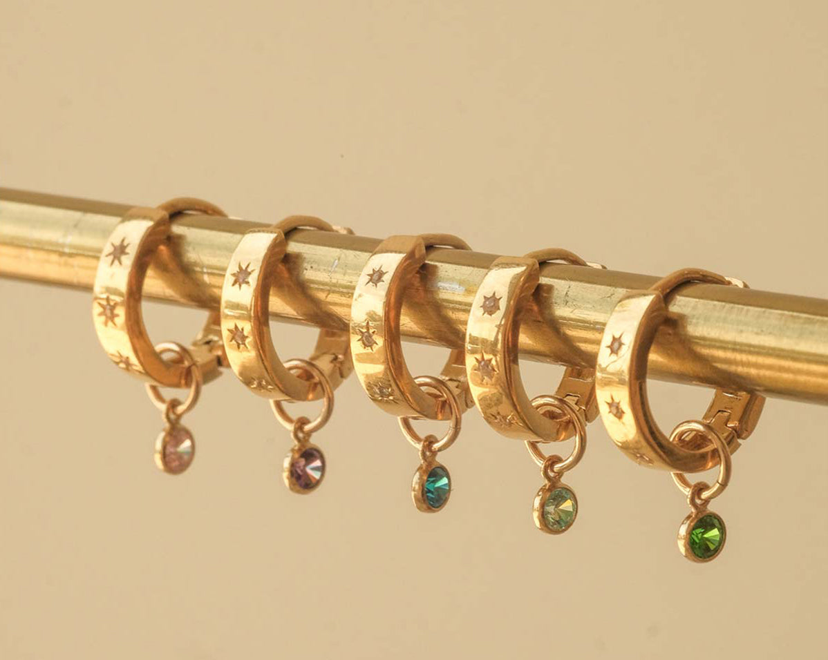 The bigger sister of our Aurelia huggies, Aurora is a huggie-style hoop that is for the bold. Featuring 4 inset gemstones on a flat rectangular style finish, Aurora is a sleek and minimal design that is perfect for wearing on your own or layered with her sister style Aurelia. Our Aurora hoops have a larger gauge post, so she is more suitable for your main lobes.