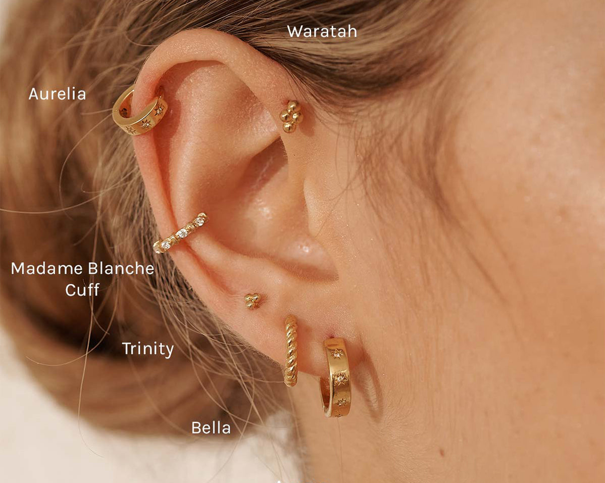 Pure gold is 24 karat, this means that 14 karat gold contained 14 parts gold (58.5%) and 10 parts alloying metal. We have chosen to use 14k solid gold as it is biocompatible making it suitable for new piercings and sensitive skin. However, there is enough alloy to ensure it is still sturdy and not too soft. The higher the karatage, the softer the metal & more prone to bending & scratching.
